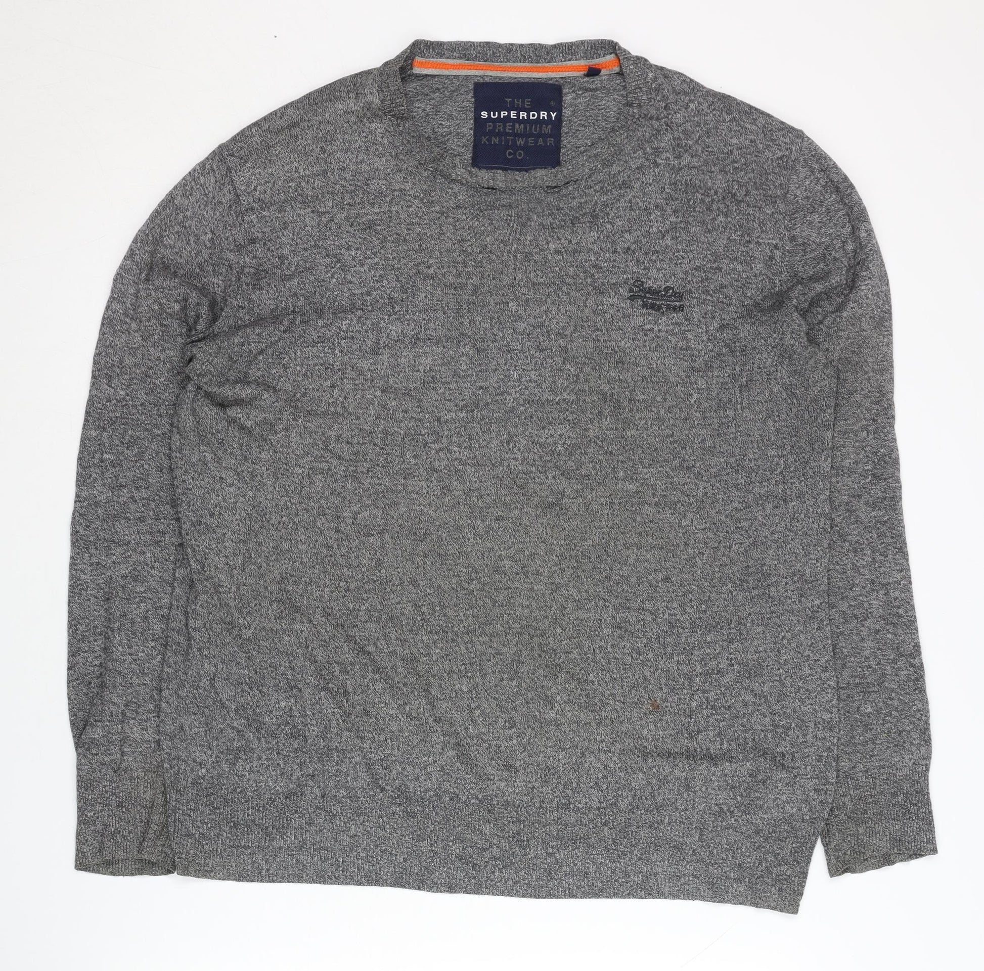 Superdry Men's Grey Large Pullover Jumper, Logo Accent