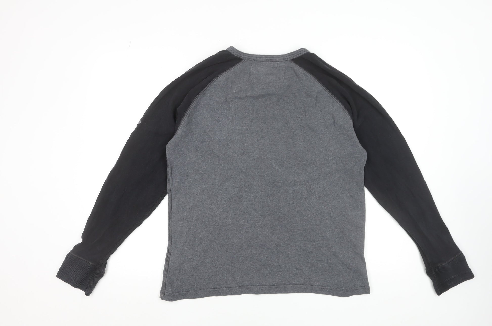 Superdry Men's Grey Long Sleeve Henley Cotton T-Shirt Size L