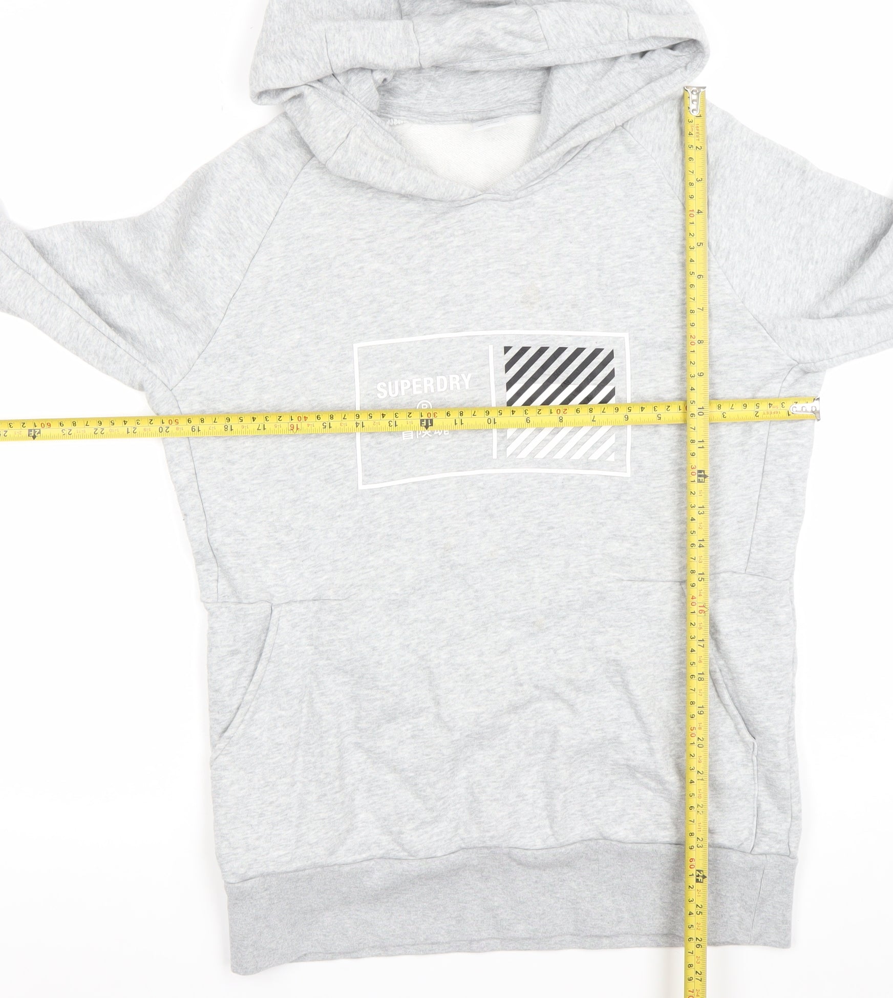 Superdry Men's Grey Pullover Hoodie Large Logo Fleece Sweatshirt