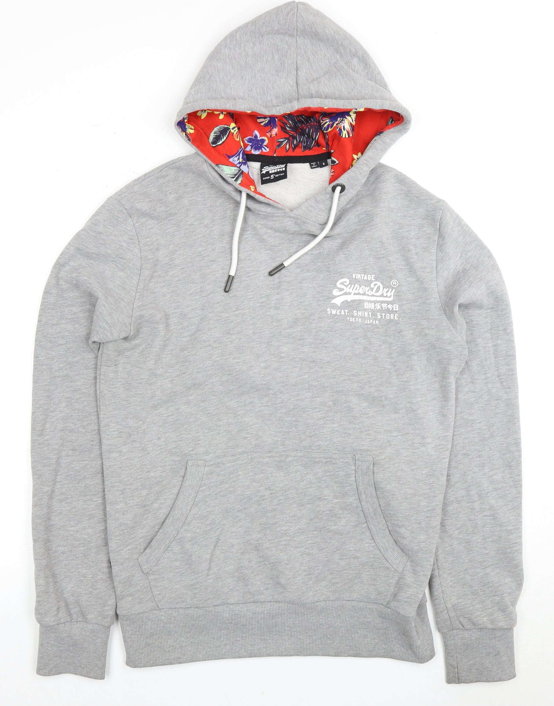 SuperDry Men's Grey Pullover Hoodie S - Logo Accent