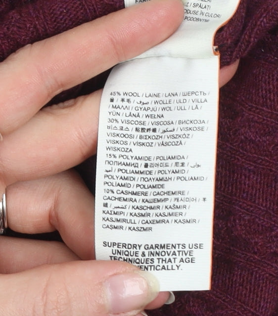 Superdry Men's Red Cable-Knit Wool Blend Jumper Size S
