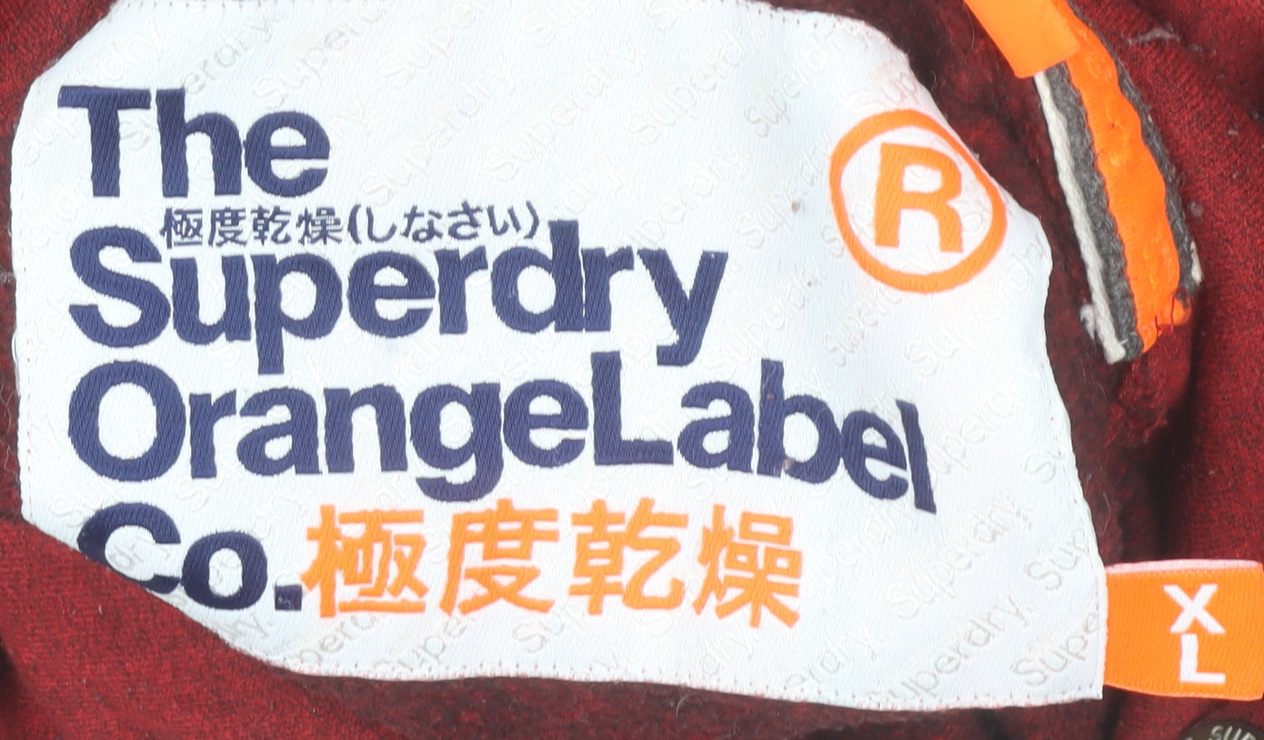 Superdry Mens Red Pullover Hoodie XL Fleece Logo Pocket Casual