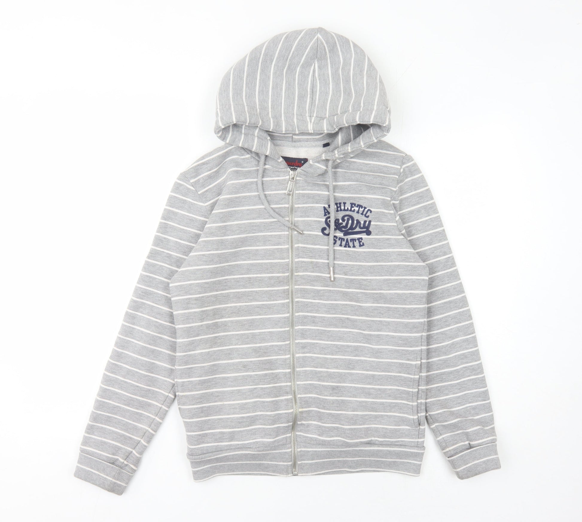 Superdry Unisex Grey Striped Full Zip Hoodie Size 10