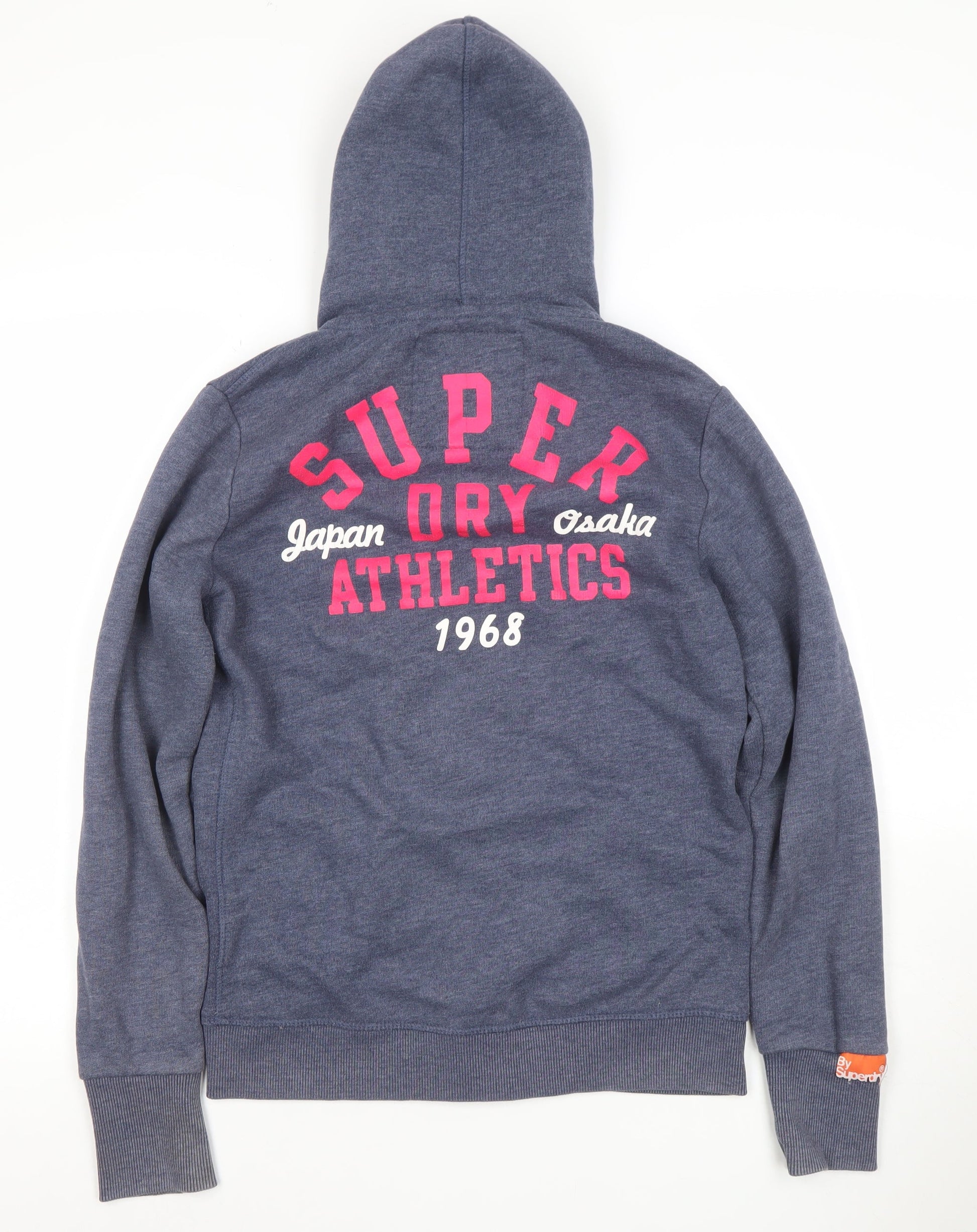 Superdry Women Blue Full Zip Hoodie Small Fleece Lined Casual