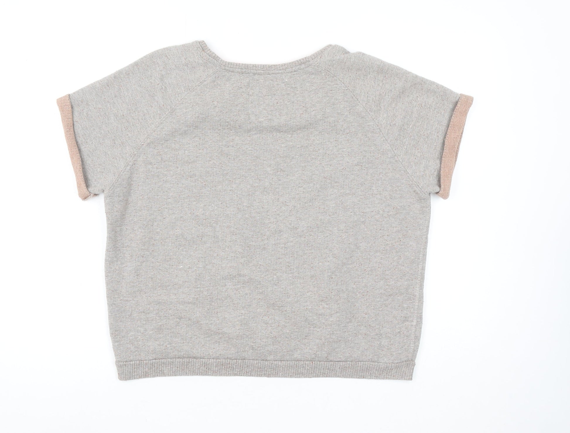 Superdry Women Grey Osaka 6 Short Sleeve Pullover Sweatshirt Size L