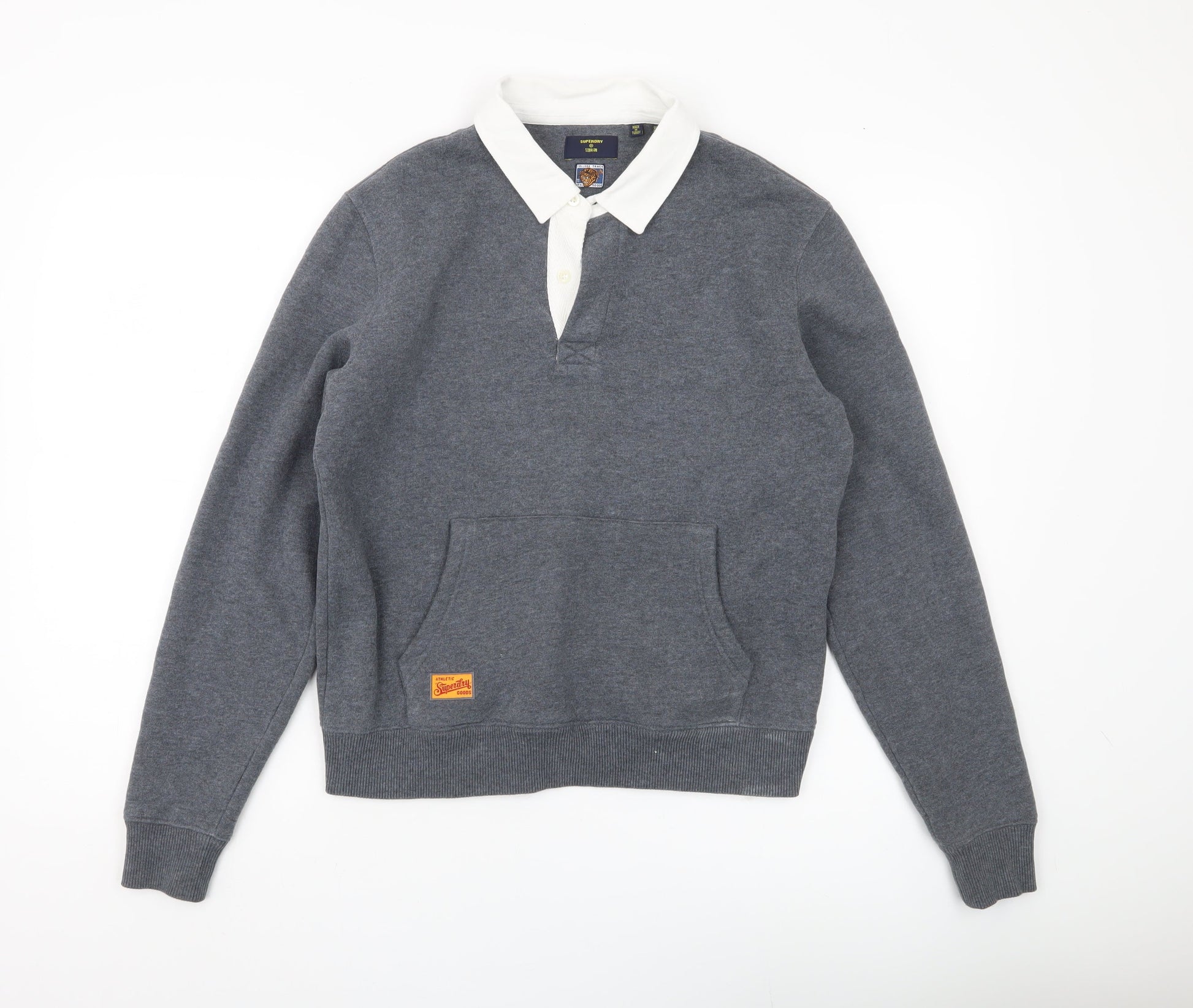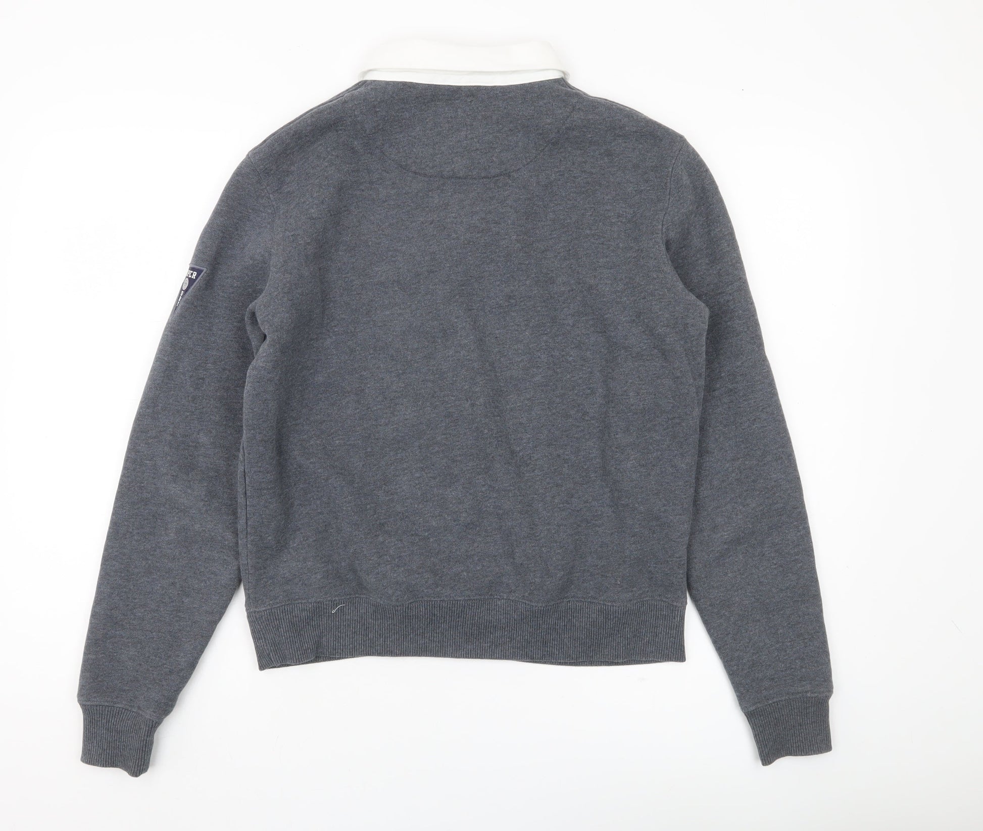 Superdry Womens Grey Henley Sweatshirt UK 8 Collared College Logo