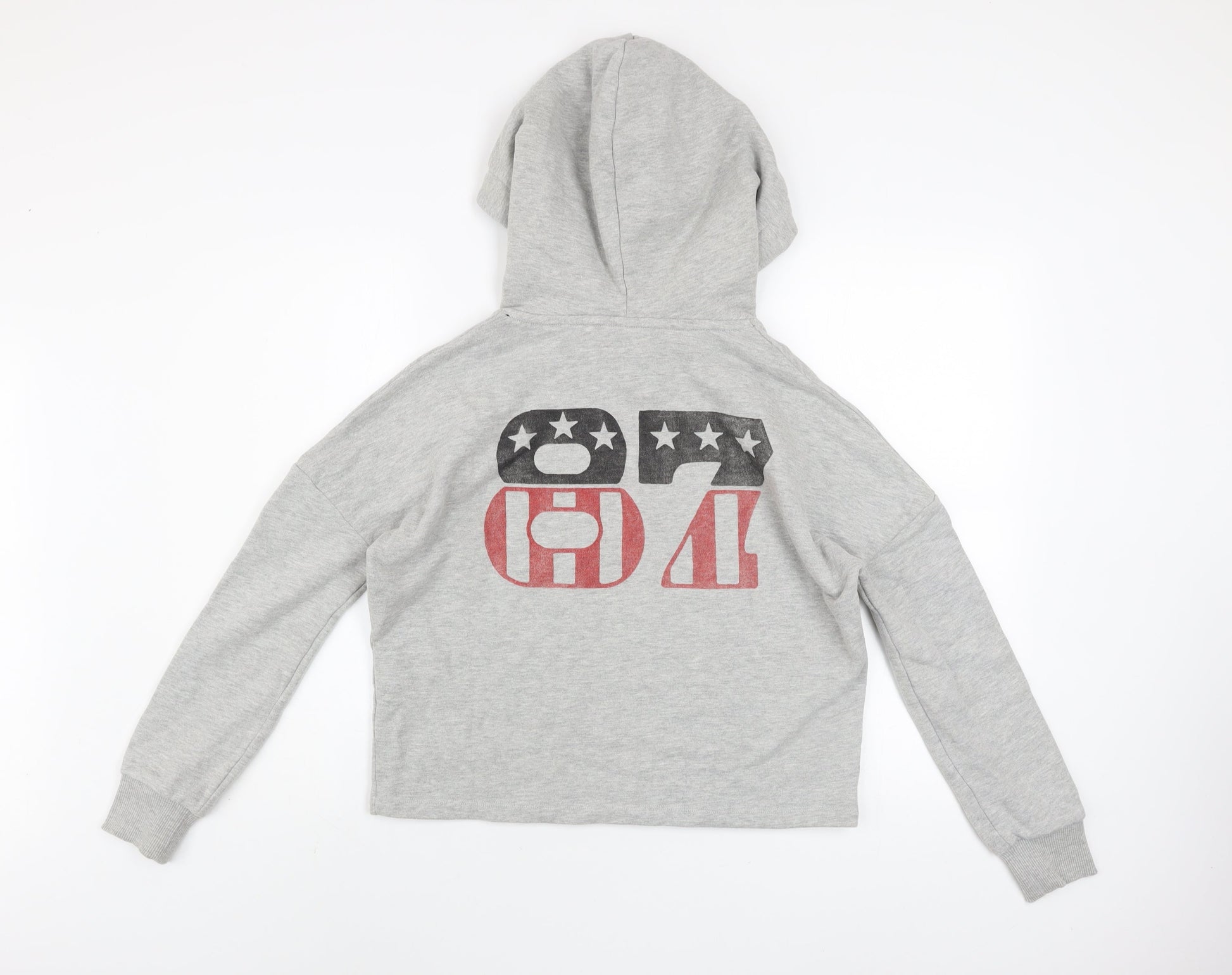 Superdry Womens Grey Hooded Pullover Hoodie UK 6 Eagle Print