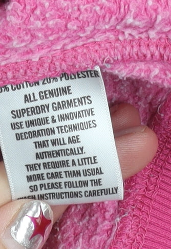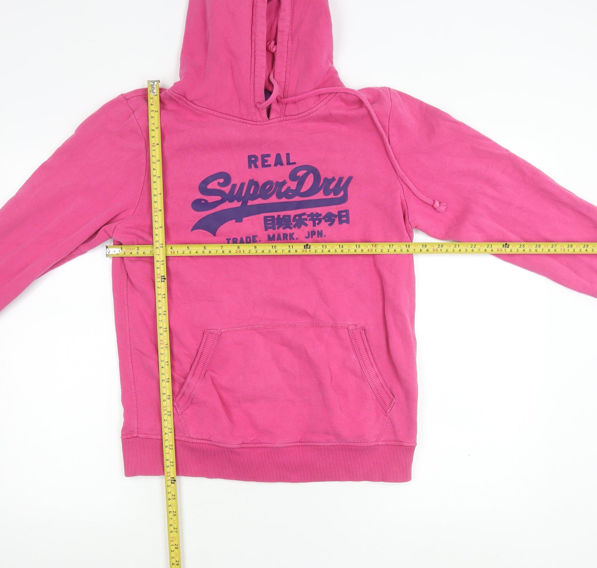 Superdry Women's Pink Pullover Hoodie L Logo Graphic Cotton Blend