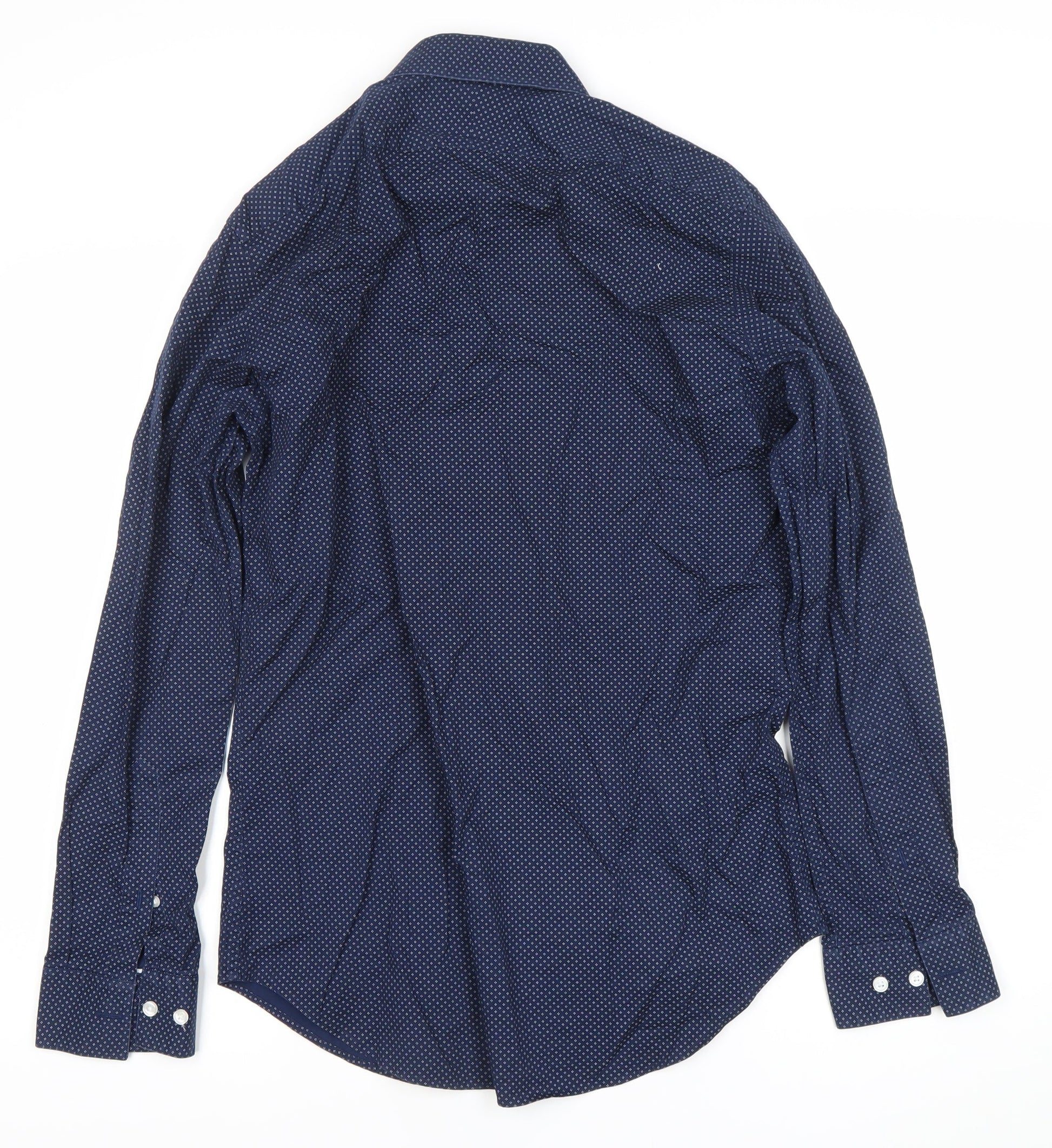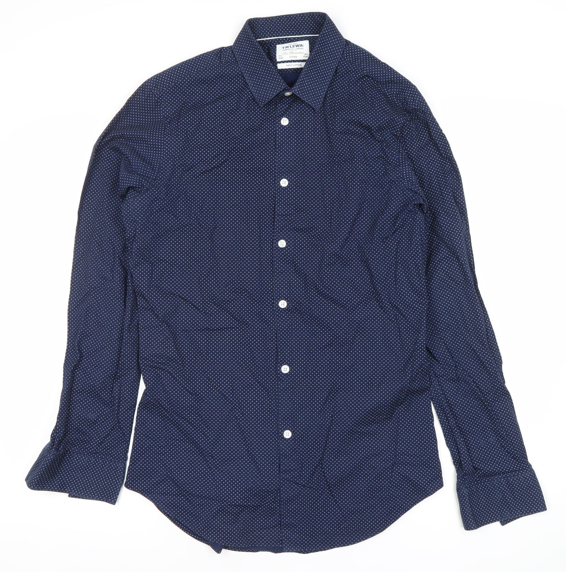 T.M. Lewin Men’s Blue Geometric Cotton Slim Fit Formal Shirt 15.5” Collar