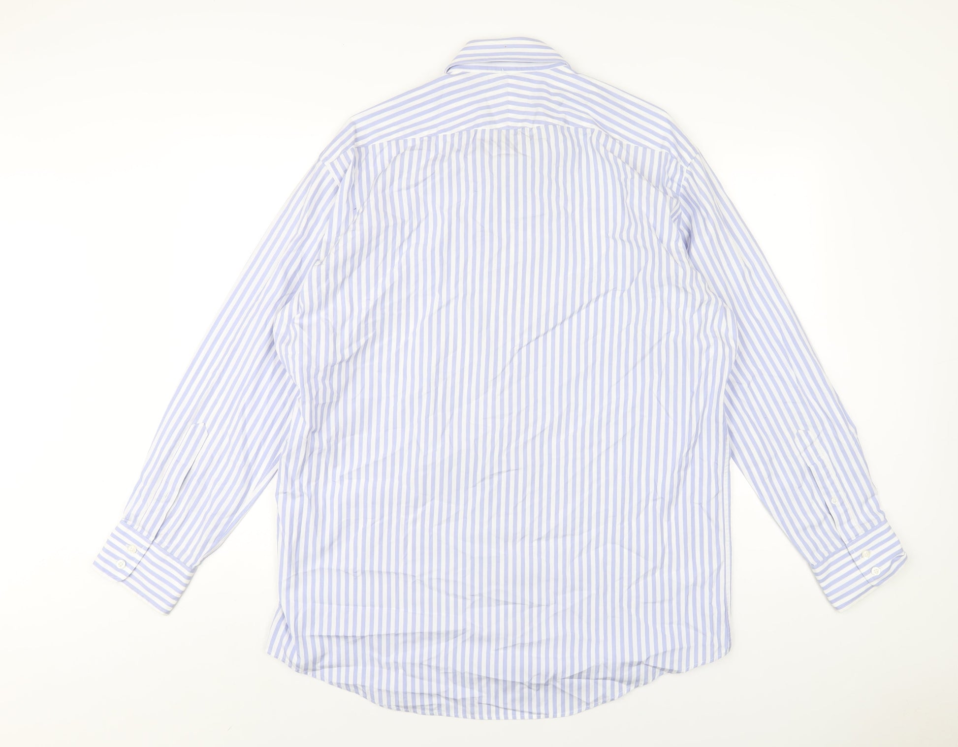 T.M.Lewin Mens Blue Striped Cotton Dress Shirt Size 17 Collared Button