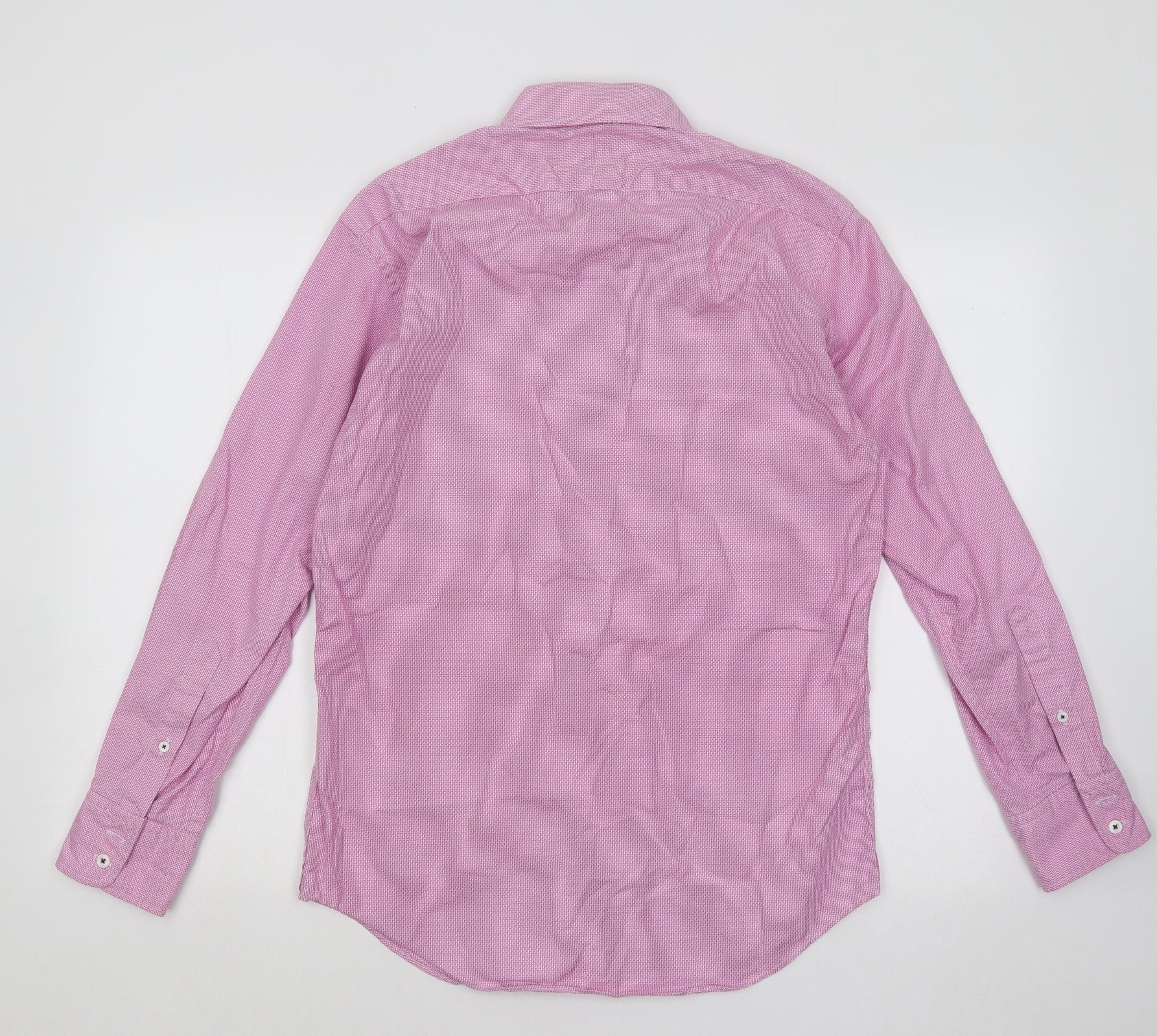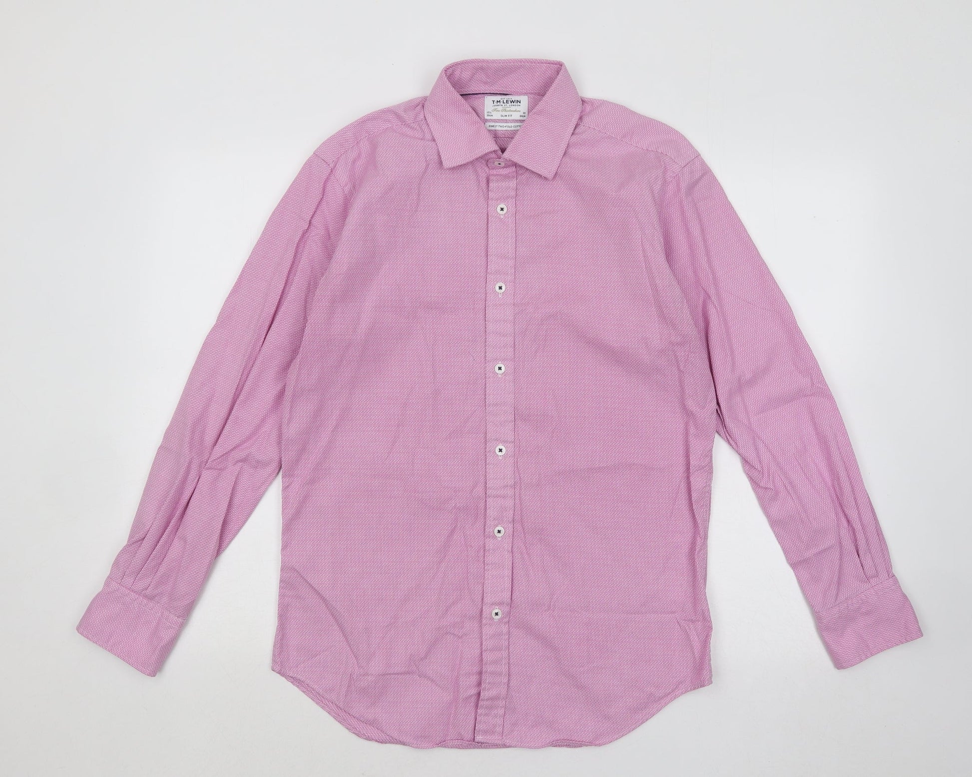 T.M.Lewin Mens Pink Geometric Cotton Button-Up Size 15.5 Collared Button
