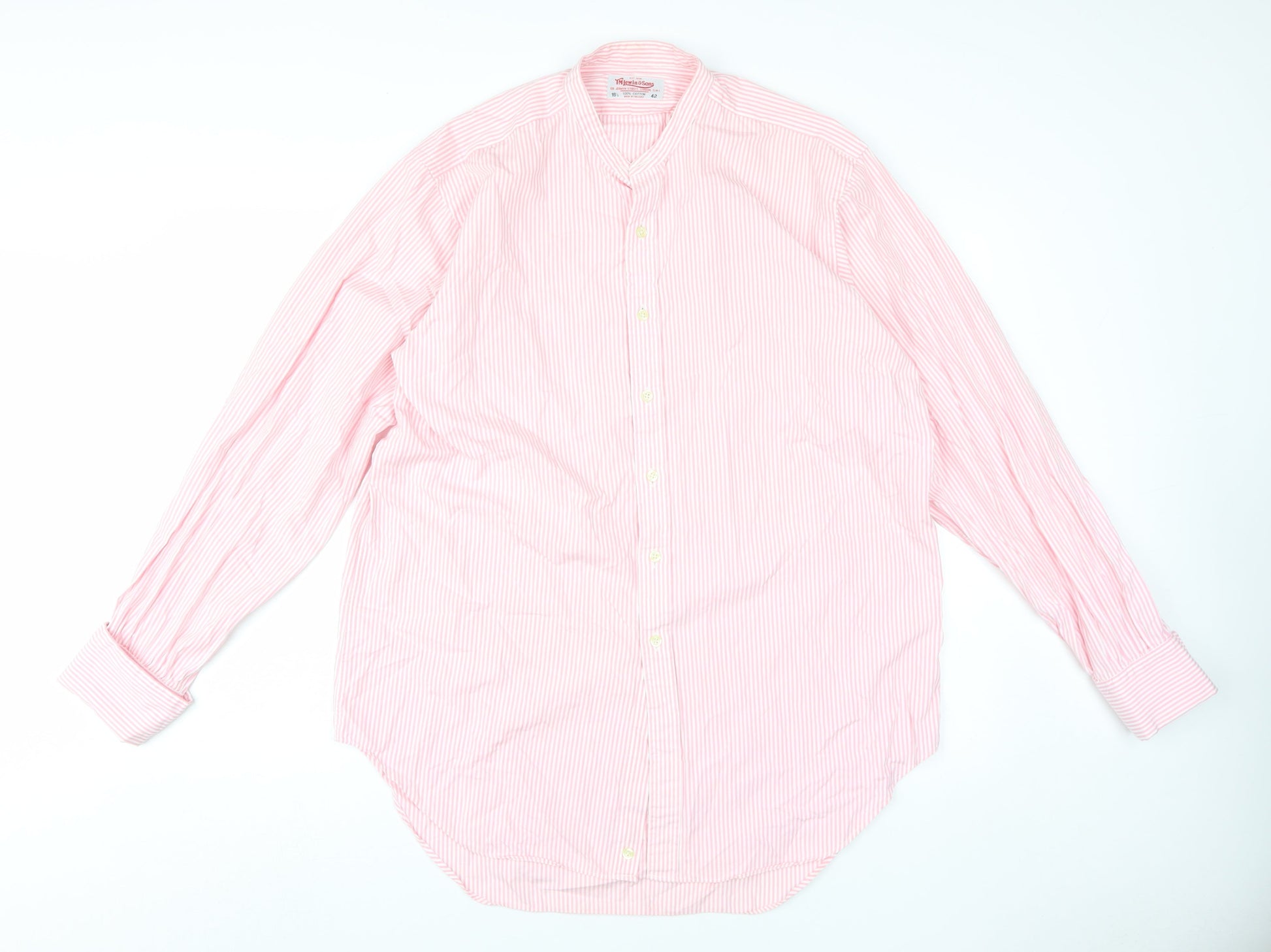 T.M.Lewin Men's Pink Striped Cotton Dress Shirt, L