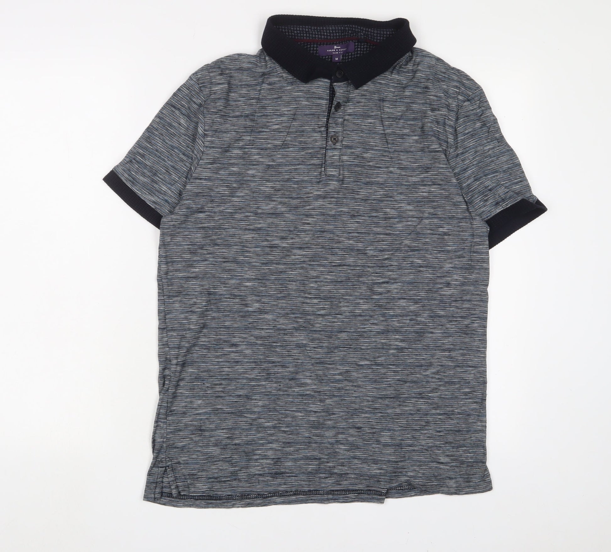 Tailor & Cutter Mens Blue Cotton Polo Size M Collared Button