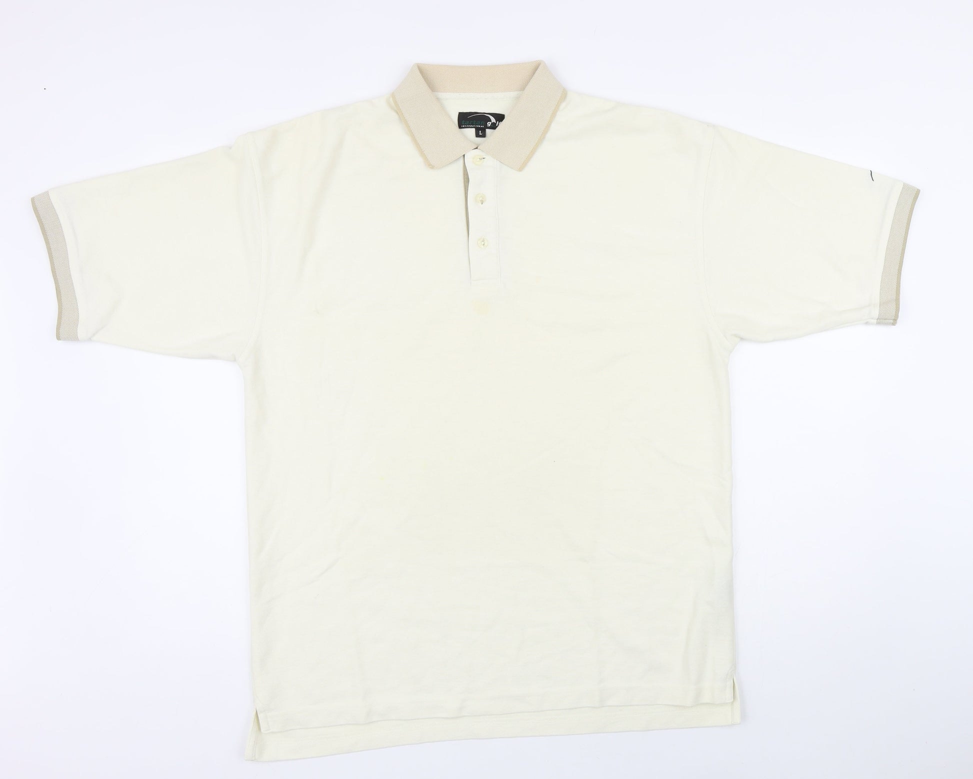Tartan golf Mens Ivory Polyester Polo Size L Collared Button