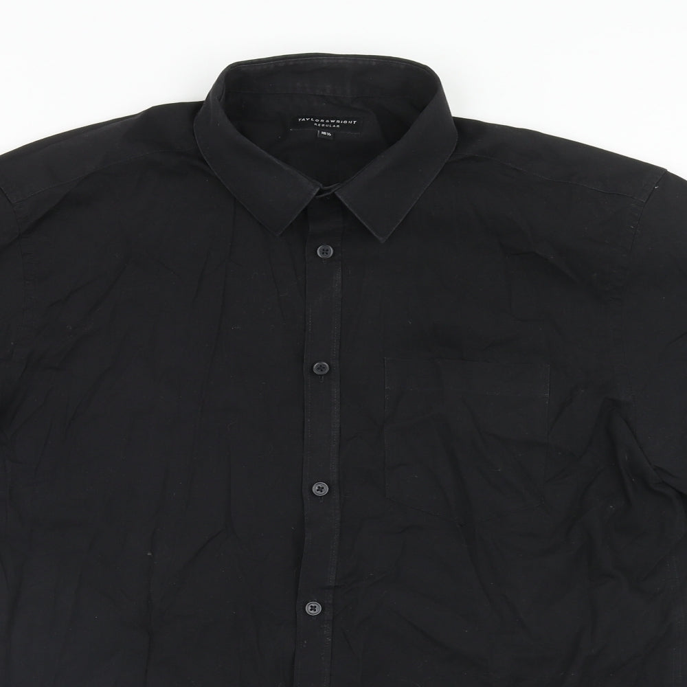 Taylor & Wright Mens Black Cotton Button-Up Size 16.5 Collared Button