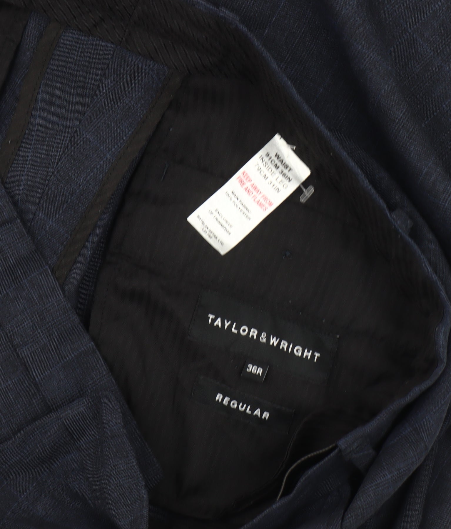 Taylor & Wright Men's Blue 36R Regular Fit Check Dress Pants