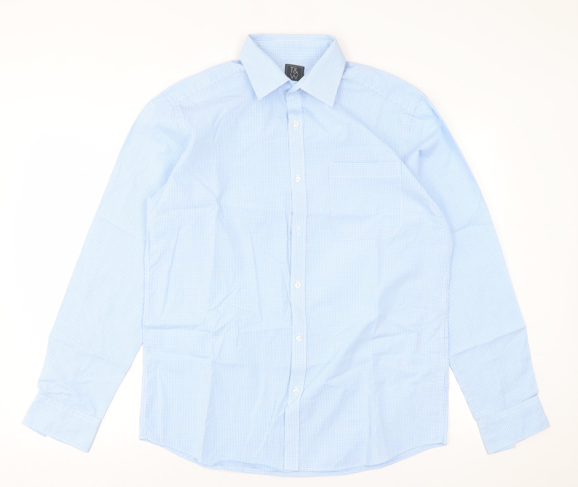 Taylor & Wright Mens Blue Plaid Cotton Button-Up Size 15.5 Collared Button
