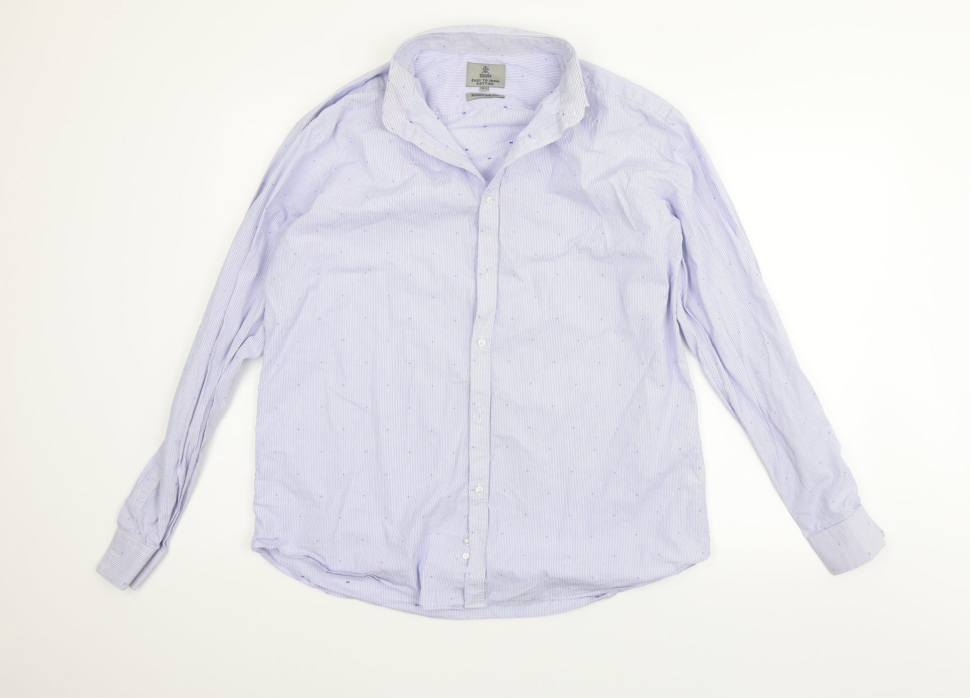Taylor & Wright Mens Blue Striped Button-Up Size 16.5