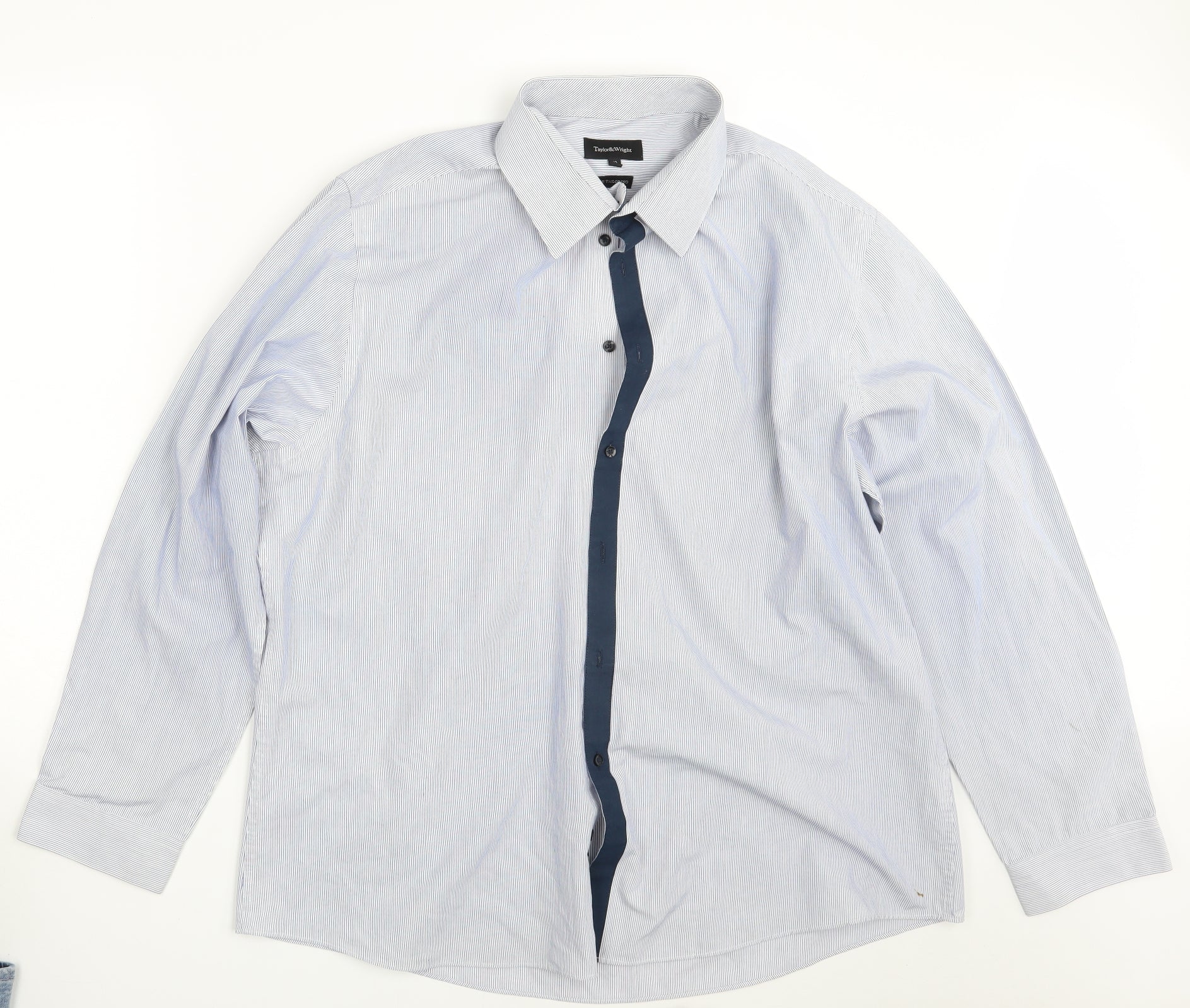Taylor & Wright Mens Blue Striped Button-Up Size 18