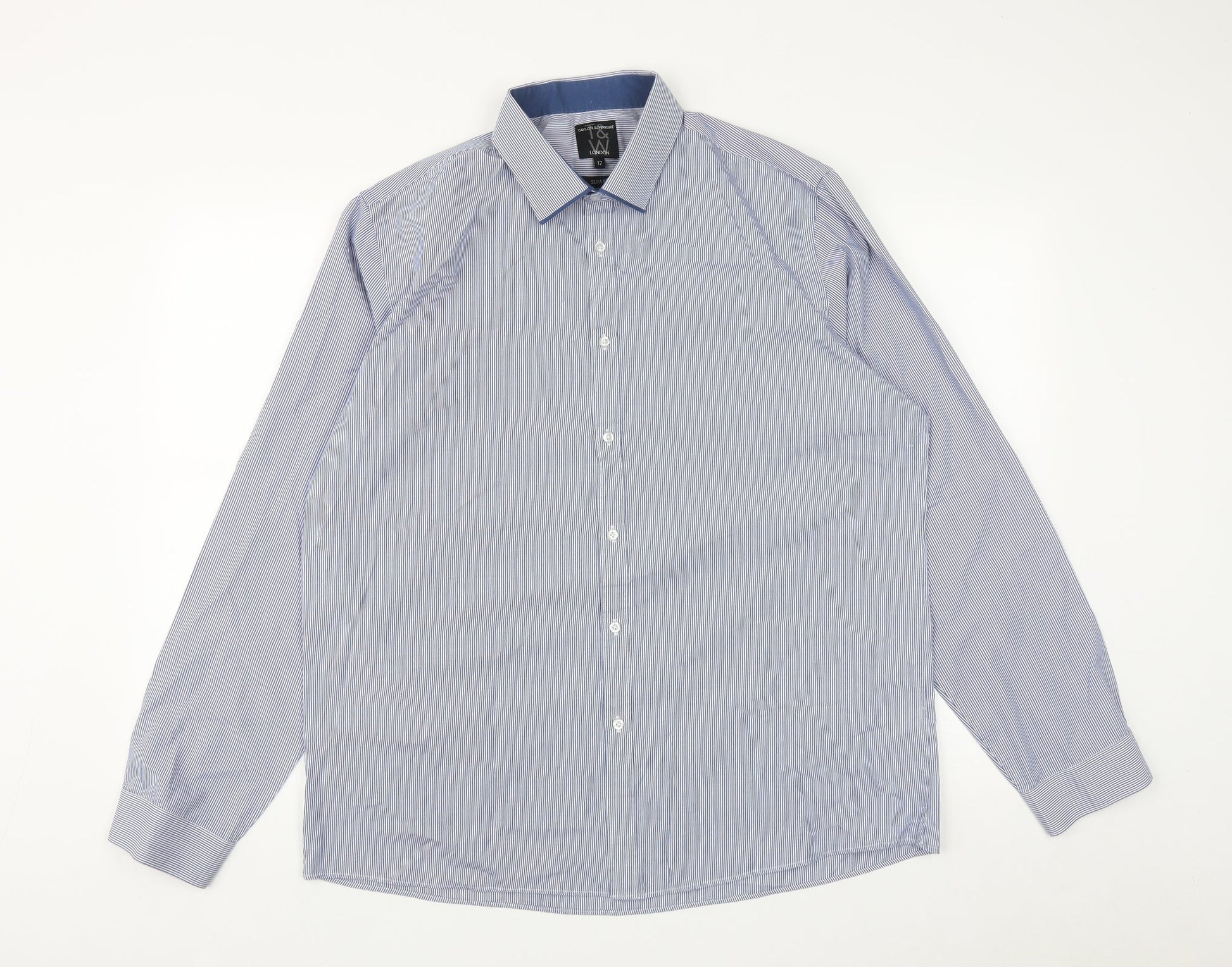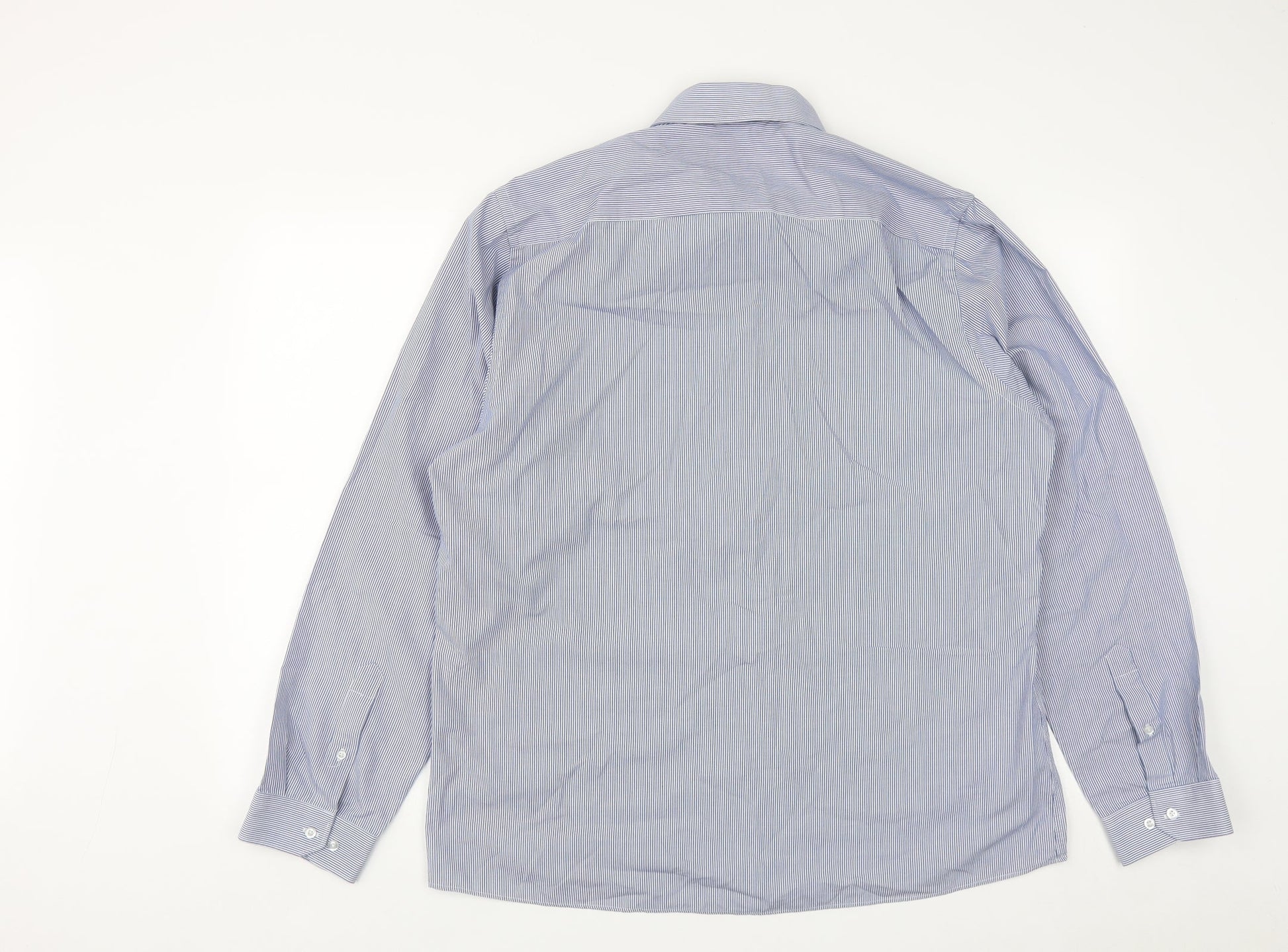 Taylor & Wright Mens Blue Striped Cotton Button-Up Size 17 Collared Button