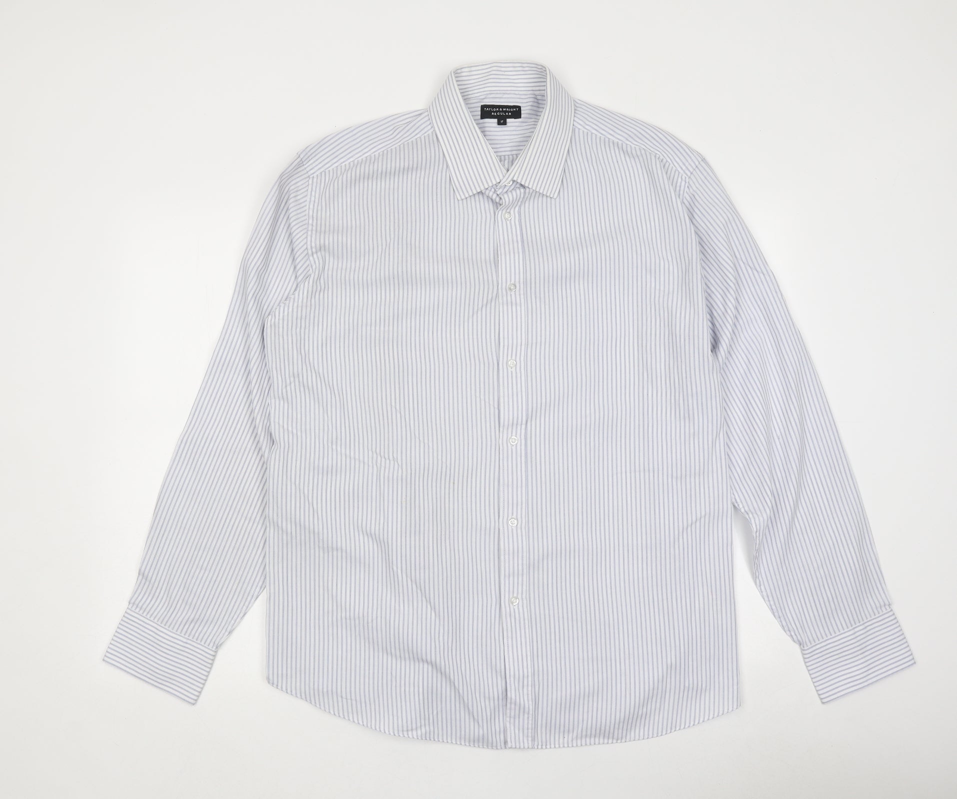 Taylor & Wright Mens Blue Striped Polyester Button-Up Size 21 Collared Button