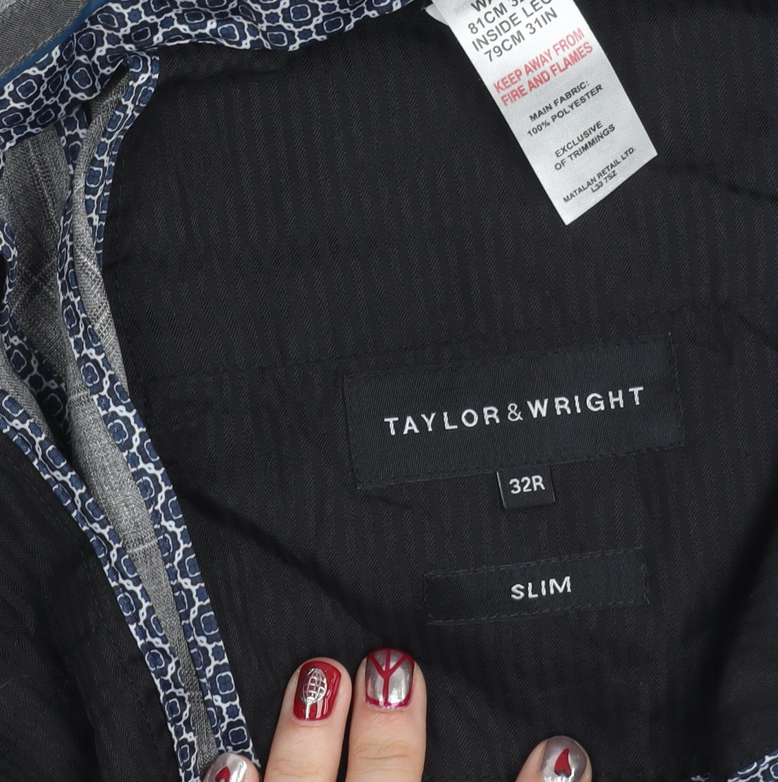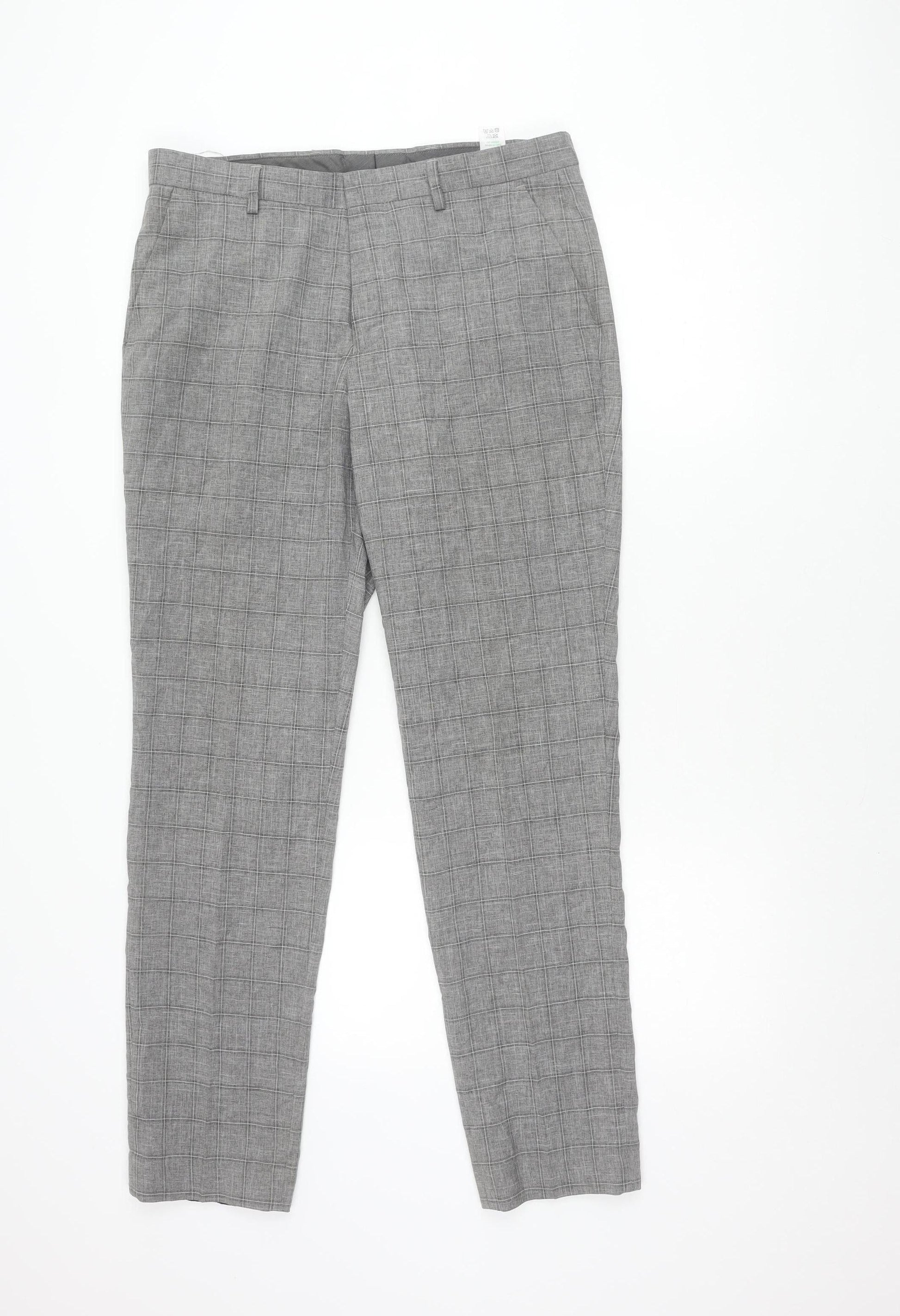 Taylor & Wright Men's Grey Check Slim Fit Dress Trousers 32W 31L