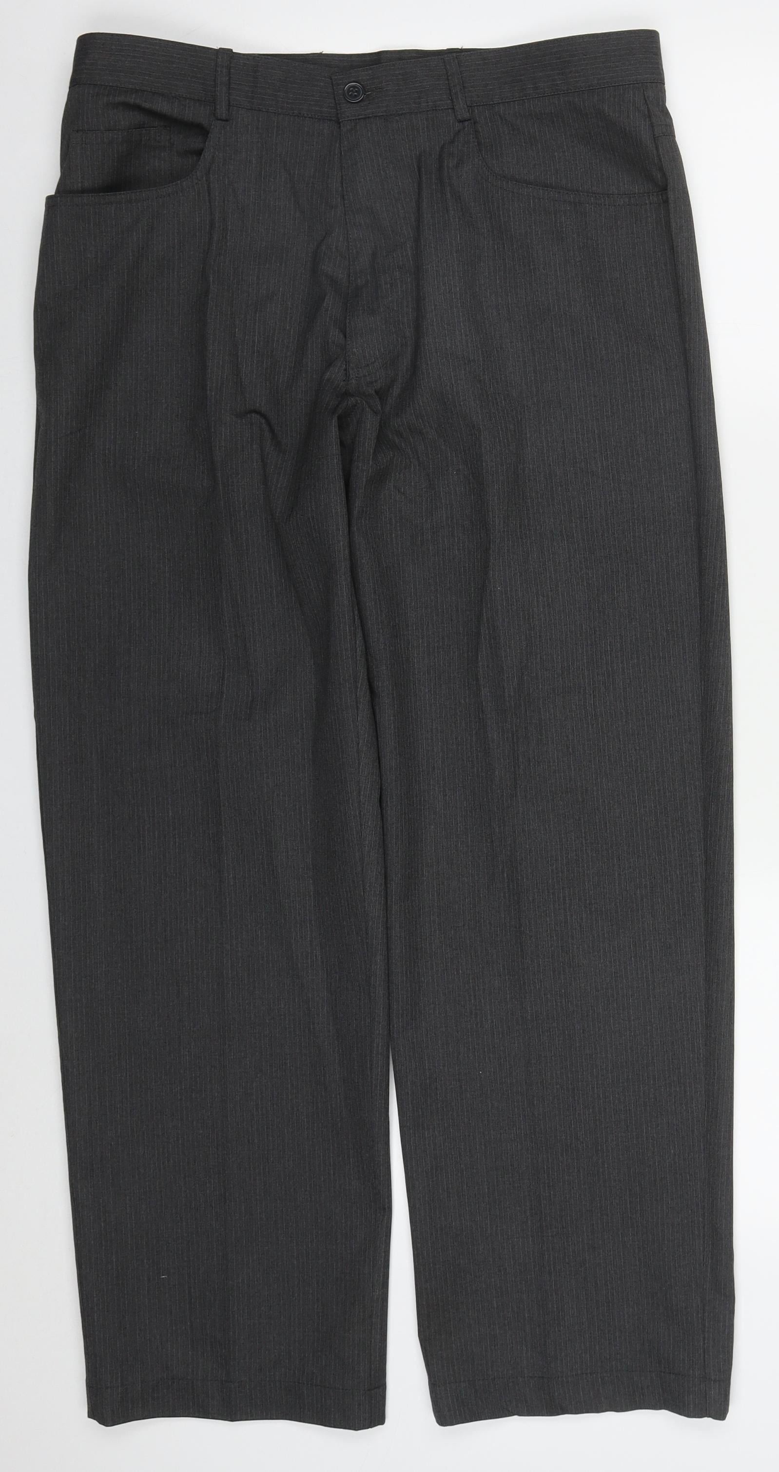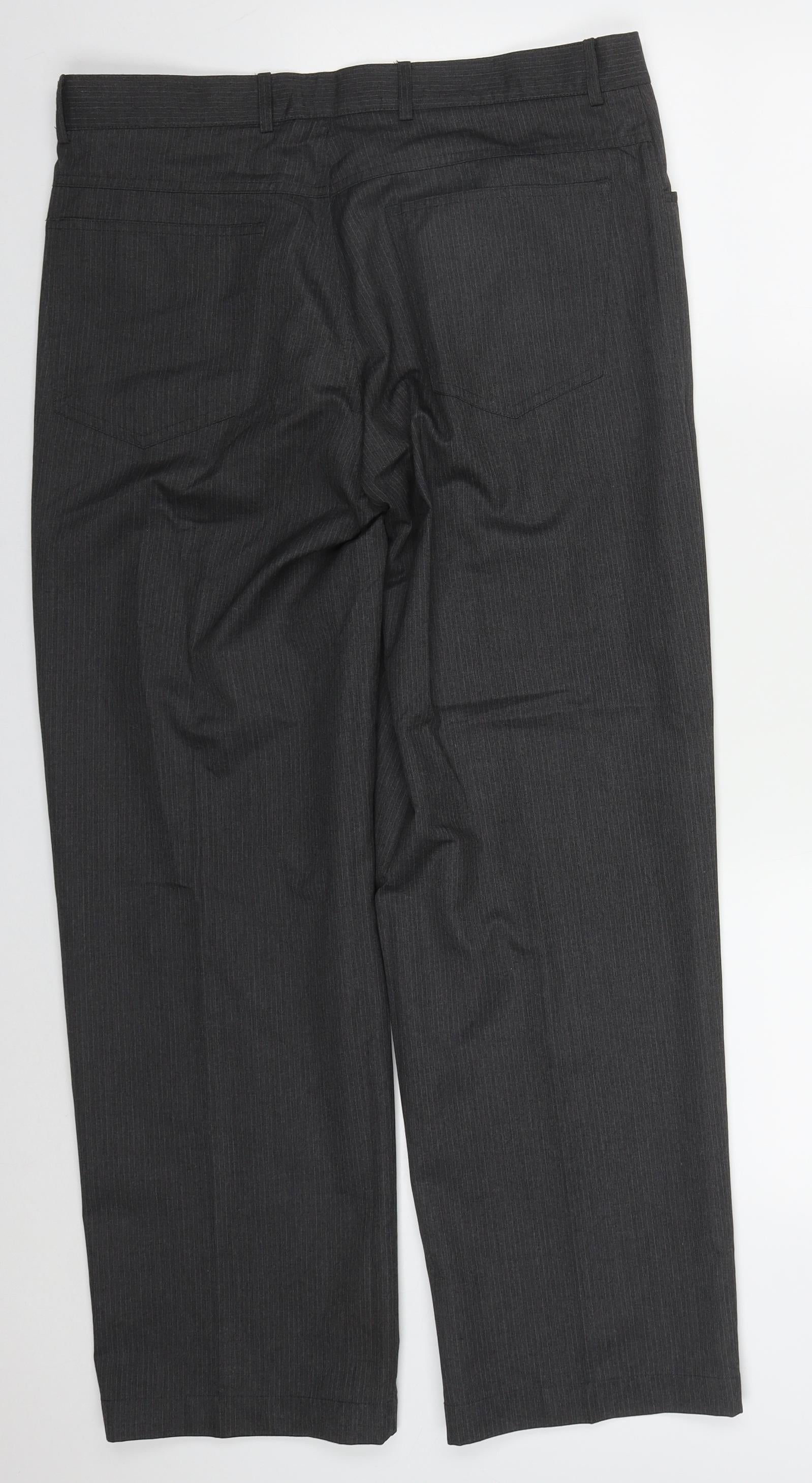 Taylor & Wright Mens Grey Striped Polyester Trousers Size 34 L29 in Regular Button