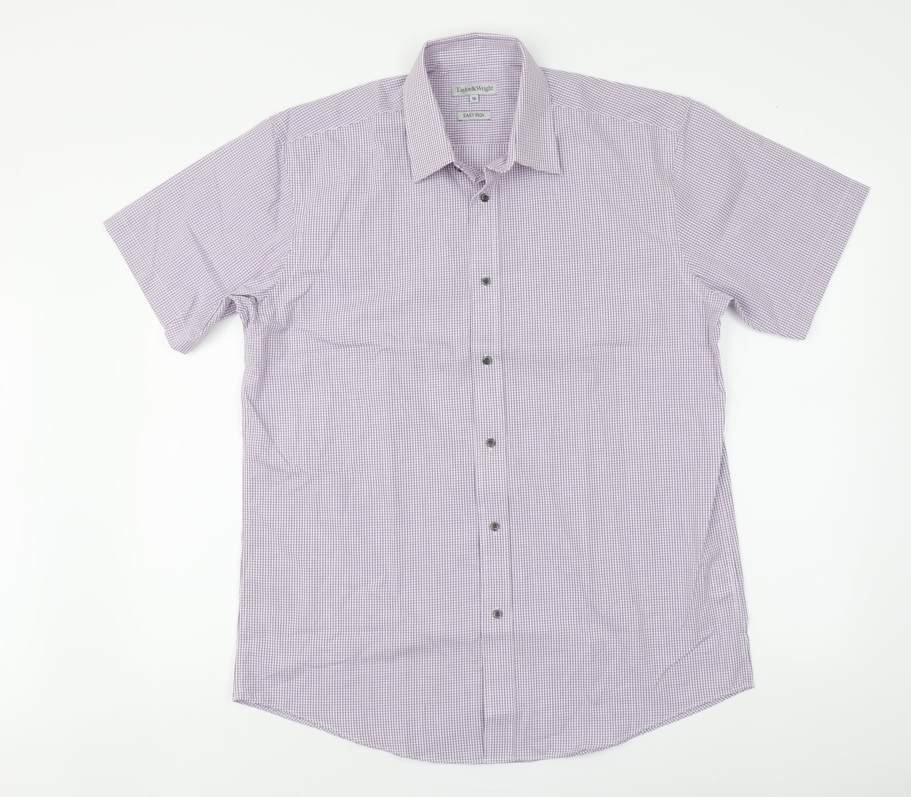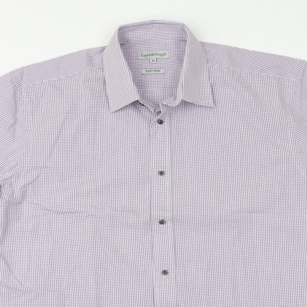 Taylor & Wright Mens Pink Check Polyester Button-Up Size 16 Collared Button