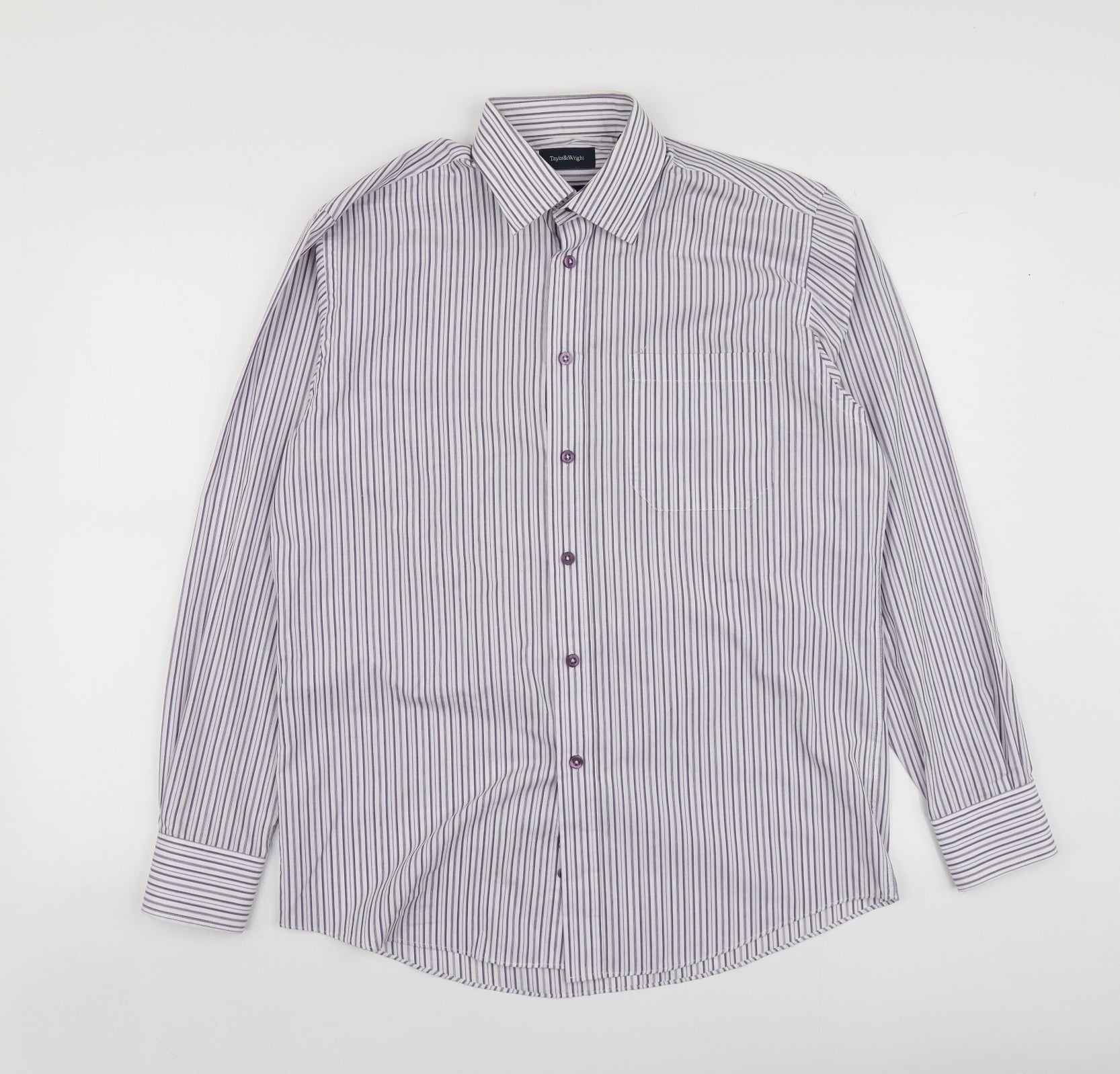 Taylor & Wright Mens Purple Striped Polyester Button-Up Size 15 Collared