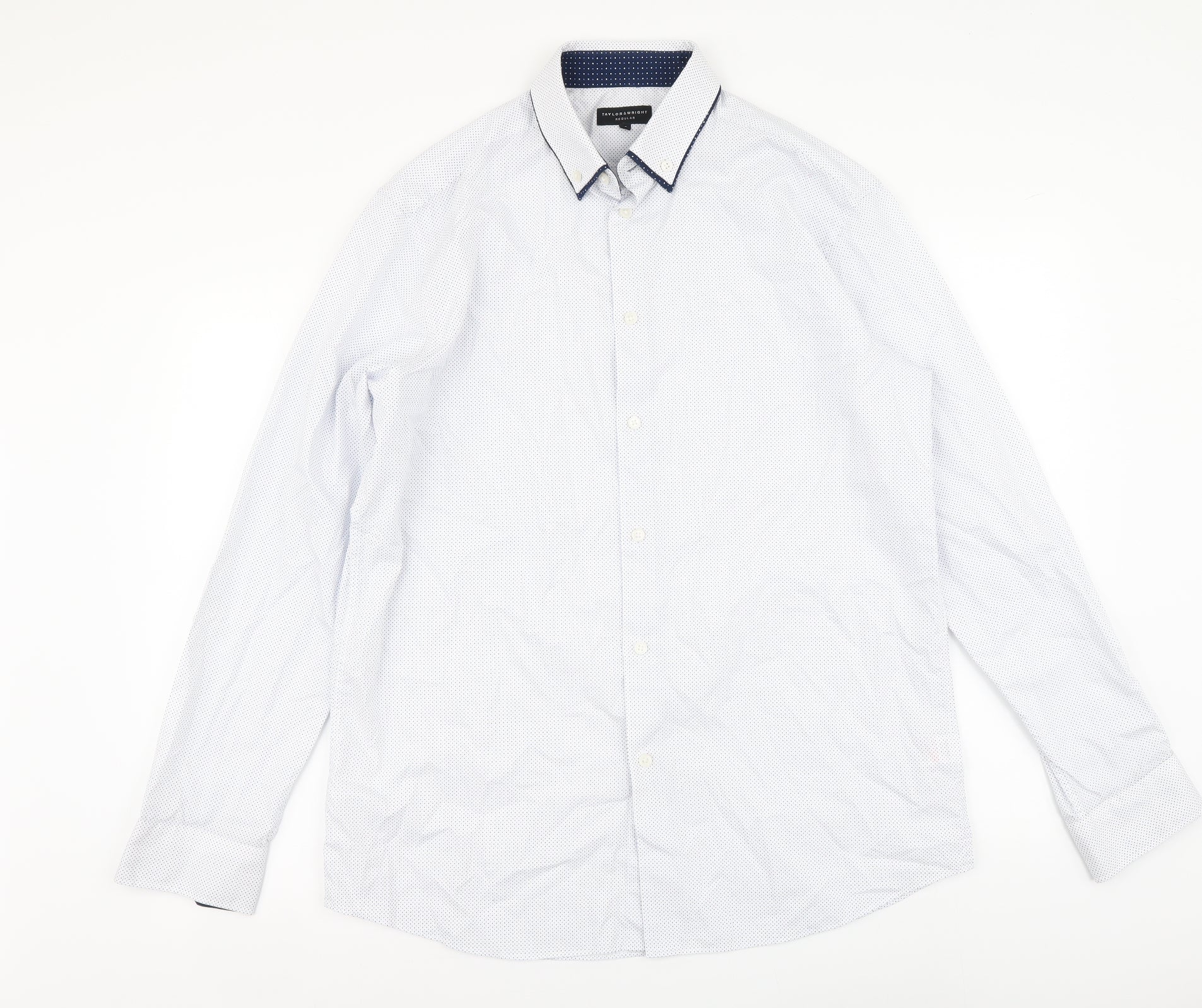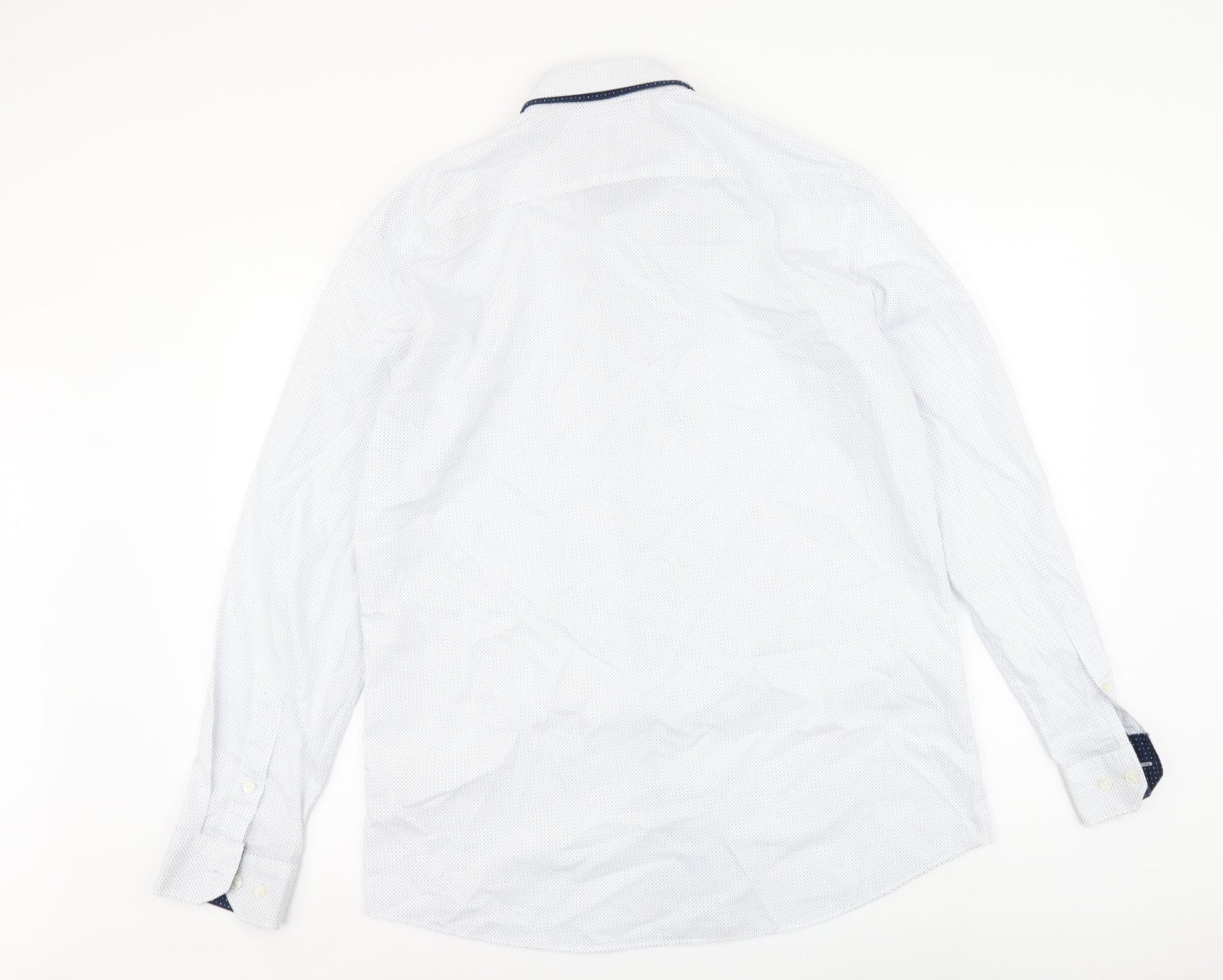 Taylor & Wright Mens White Polka Dot Polyester Button-Up Size 16 Collared Button