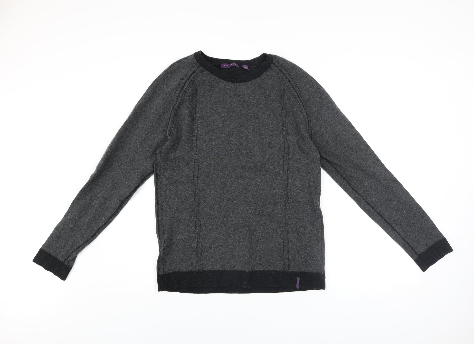 Ted Baker Men Grey Wool Cotton Crew Neck Jumper Size M