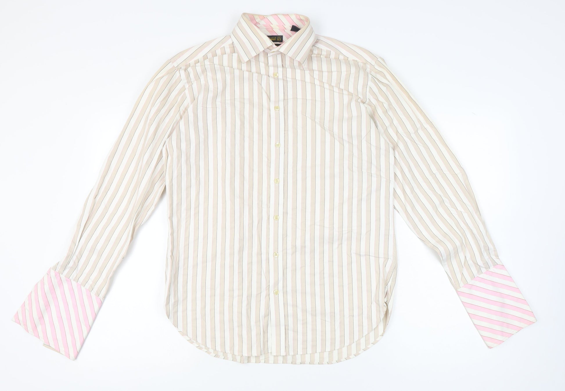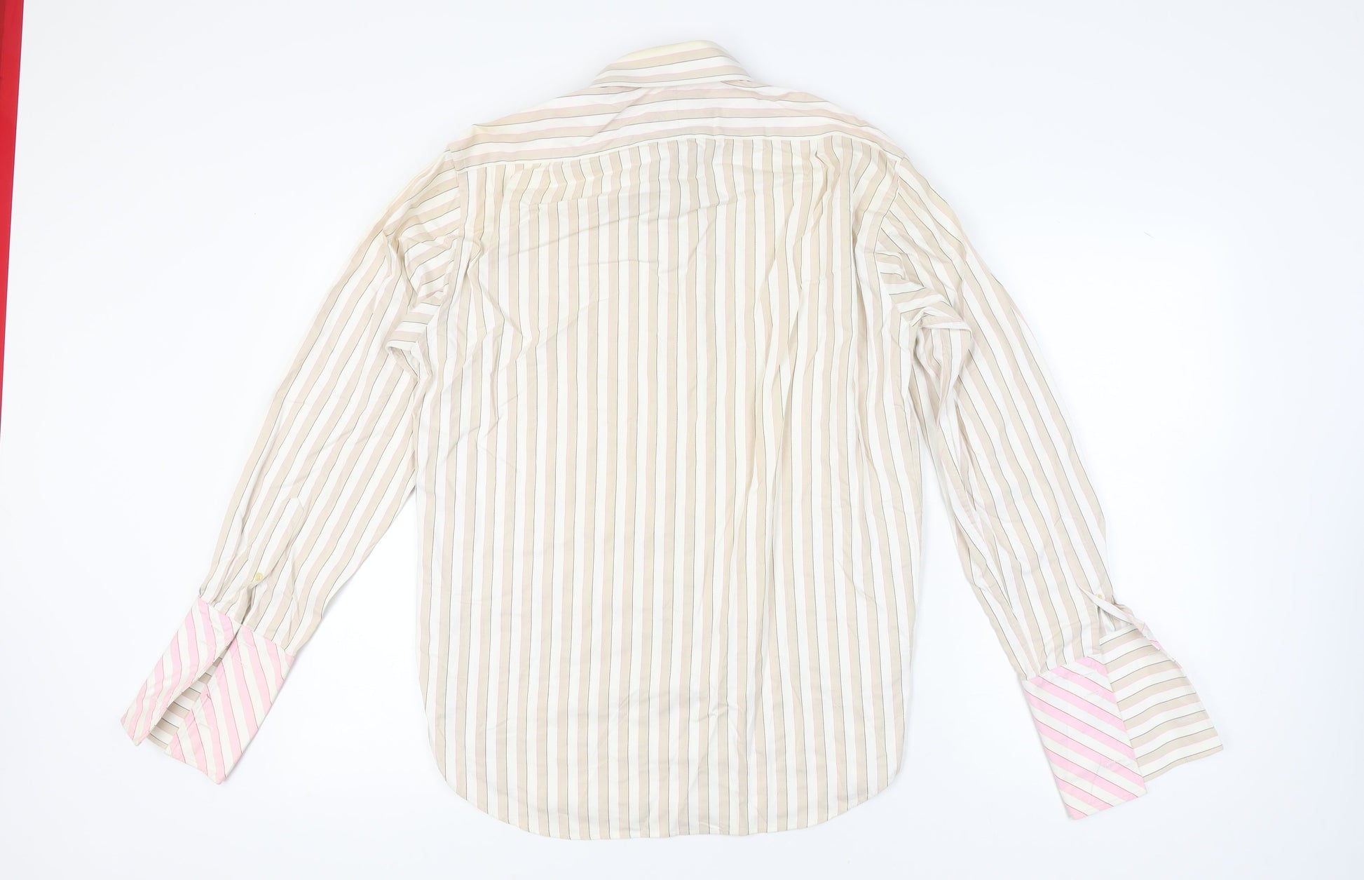 Ted Baker Men’s Beige Striped Cotton Long Sleeve Dress Shirt Size 16