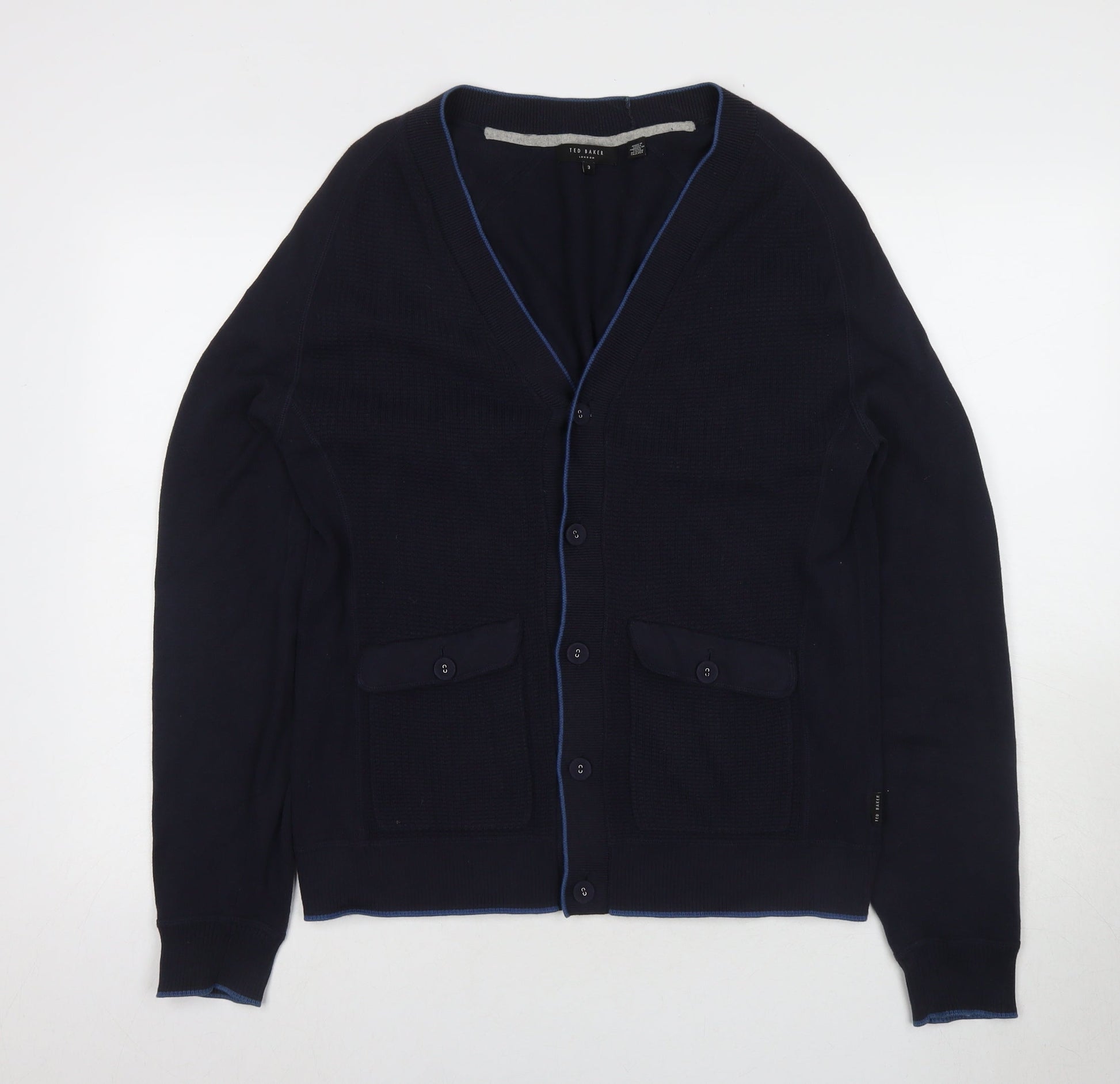 Ted Baker Men's Black Cardigan M V-Neck Cotton