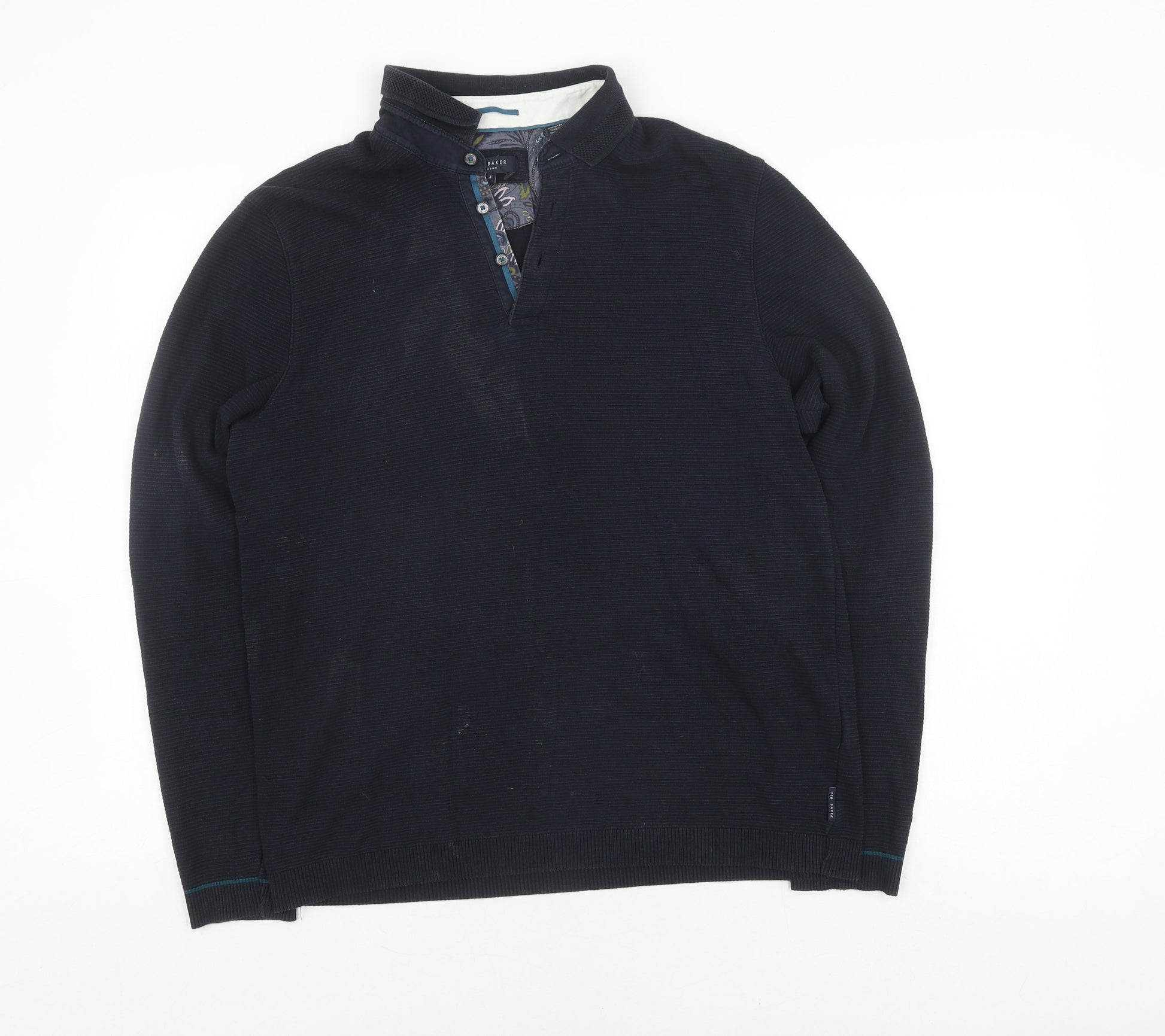 Ted Baker Men's Black Collared Pullover Jumper Size L