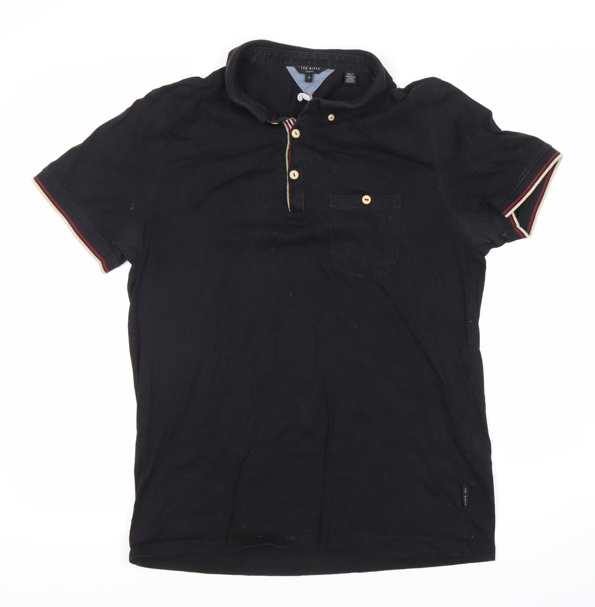 Ted Baker Men's Black Polo Shirt Size 4 Short Sleeve
