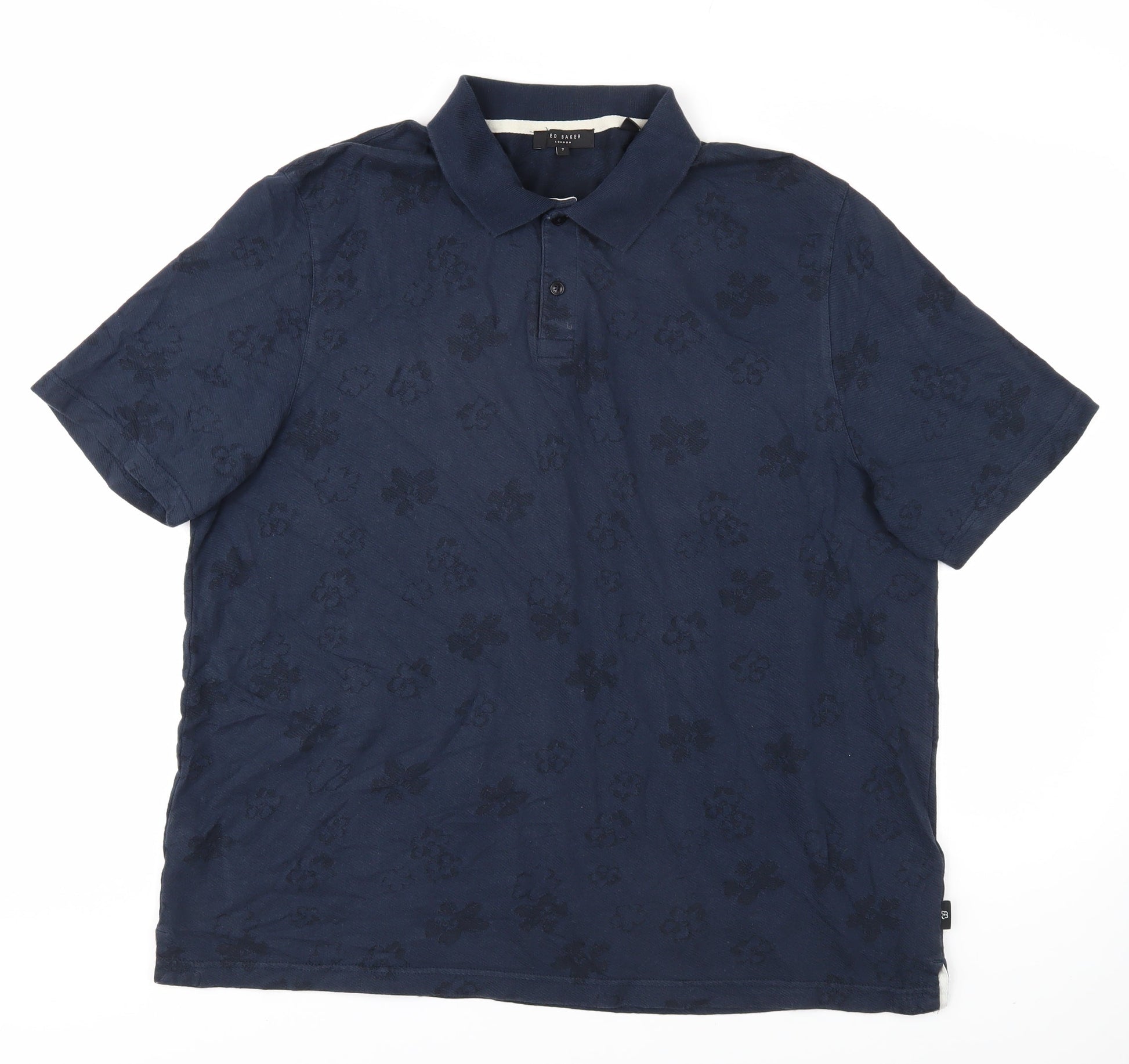 Ted Baker Men's Blue Floral Cotton Polo Shirt XL