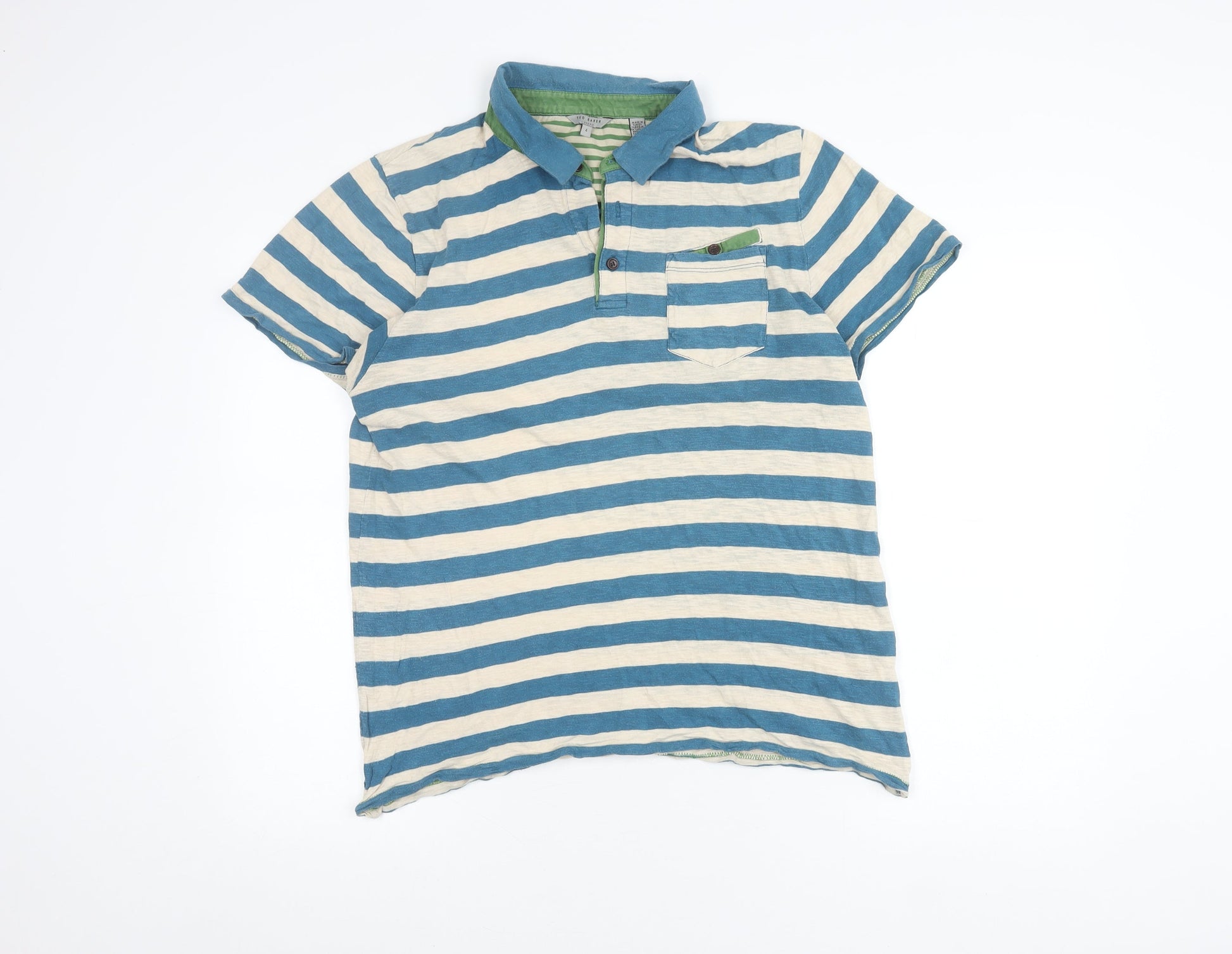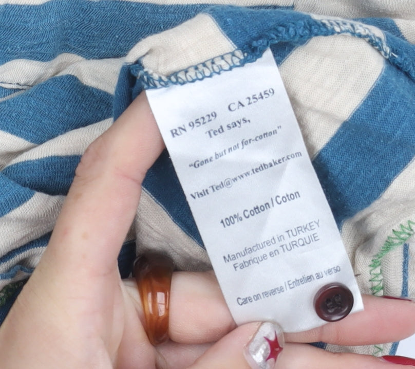 Ted Baker Men's Blue Striped Polo Shirt Size L Cotton Casual