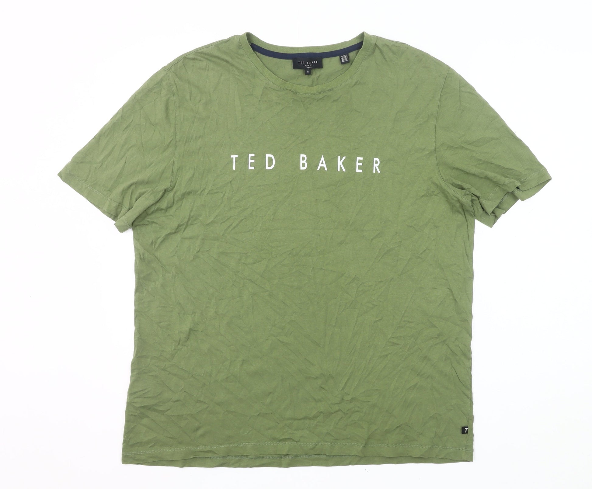Ted Baker Mens Green Logo T-Shirt Size L Crew Neck Cotton