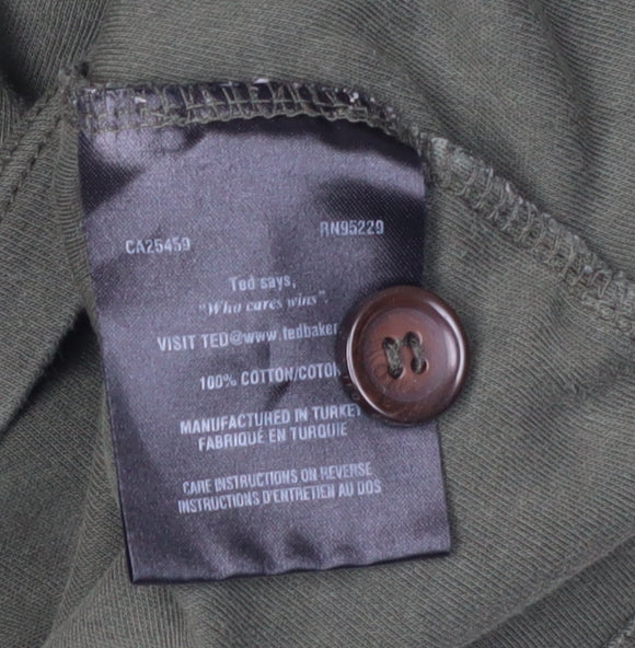 Ted Baker Men's Green Long Sleeve Buckle Neck T-Shirt