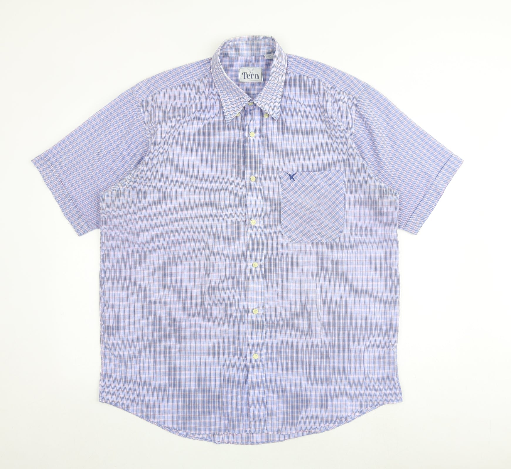 Tern Mens Blue Plaid Polyester Polo Size XL Collared Button