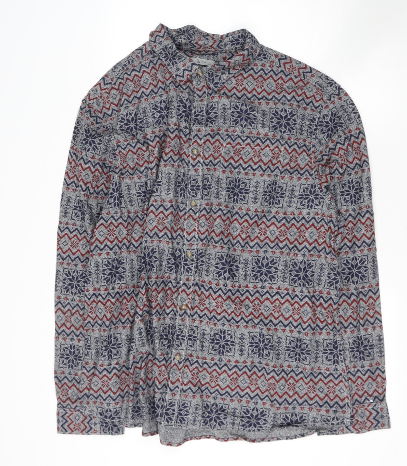 tesco Mens Multicoloured Geometric Polyester Button-Up Size XLT Collared
