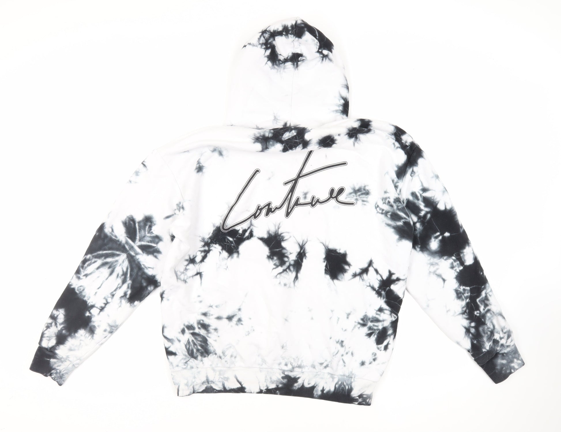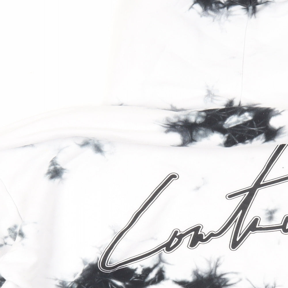 The Couture Club Mens White Cotton Pullover Hoodie Size S - Logo Pockets Tie-Dye