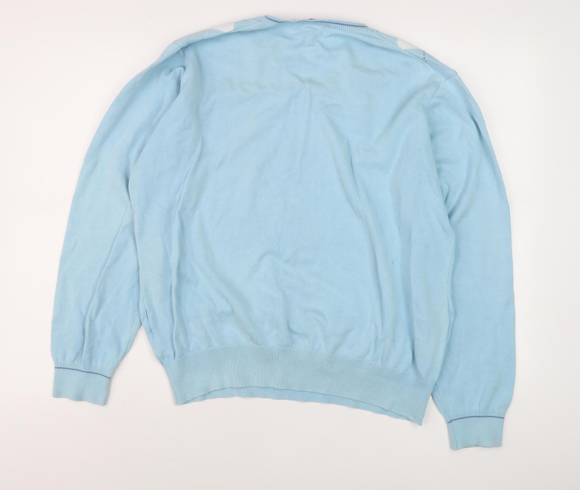 The Golf Co Men's Blue Argyle V-Neck Jumper XL