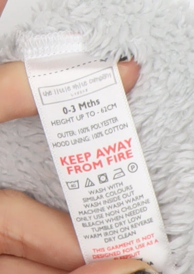 The Little White Company Unisex Baby Grey Fleece Hooded Babygrow 0-3 Months