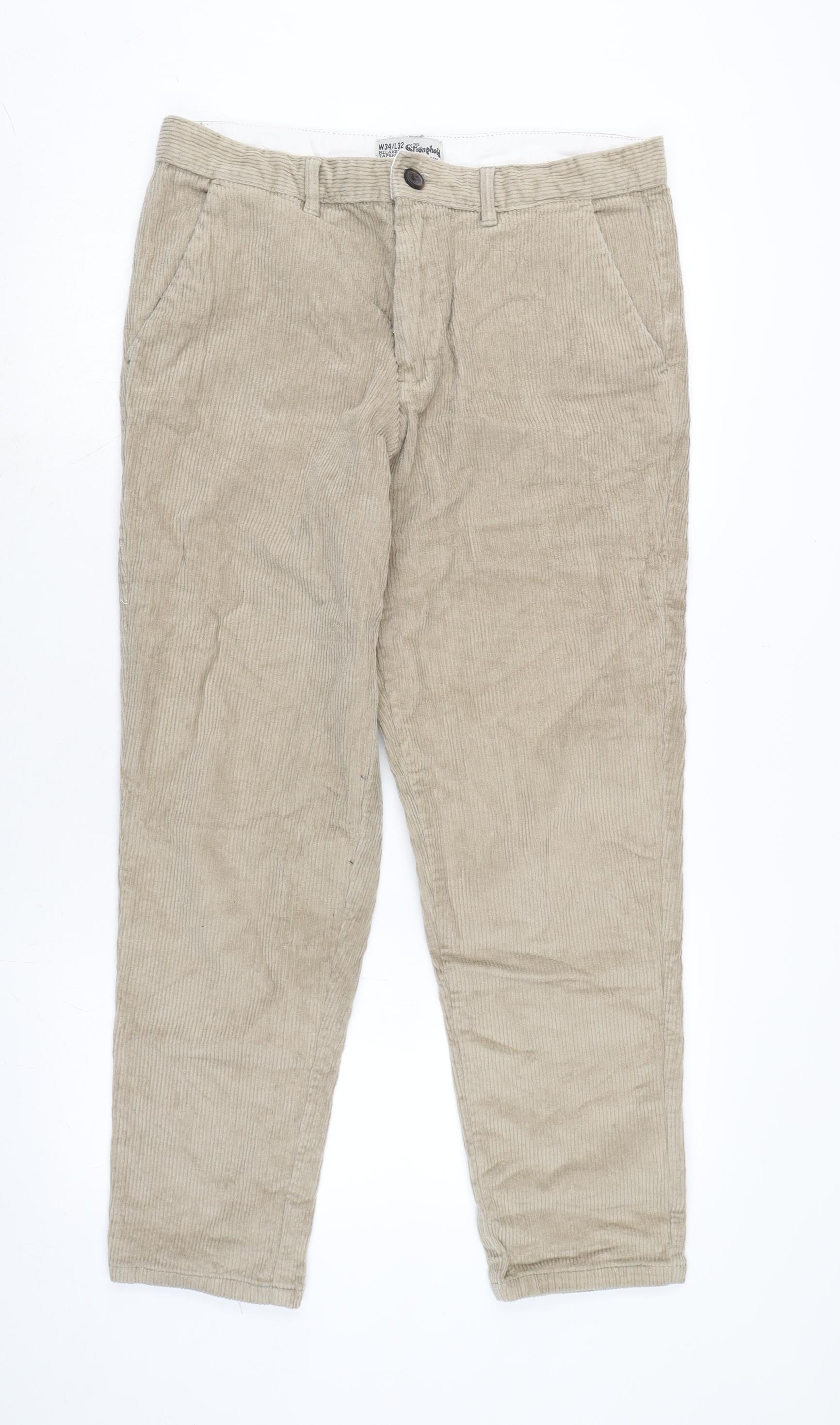 The Stronghold Mens Beige Cotton Trousers Size 34 in L28 in Regular Zip