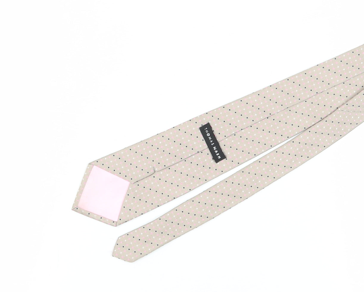 Thomas Nash Men's Beige Silk Polka Dot Tie, One Size