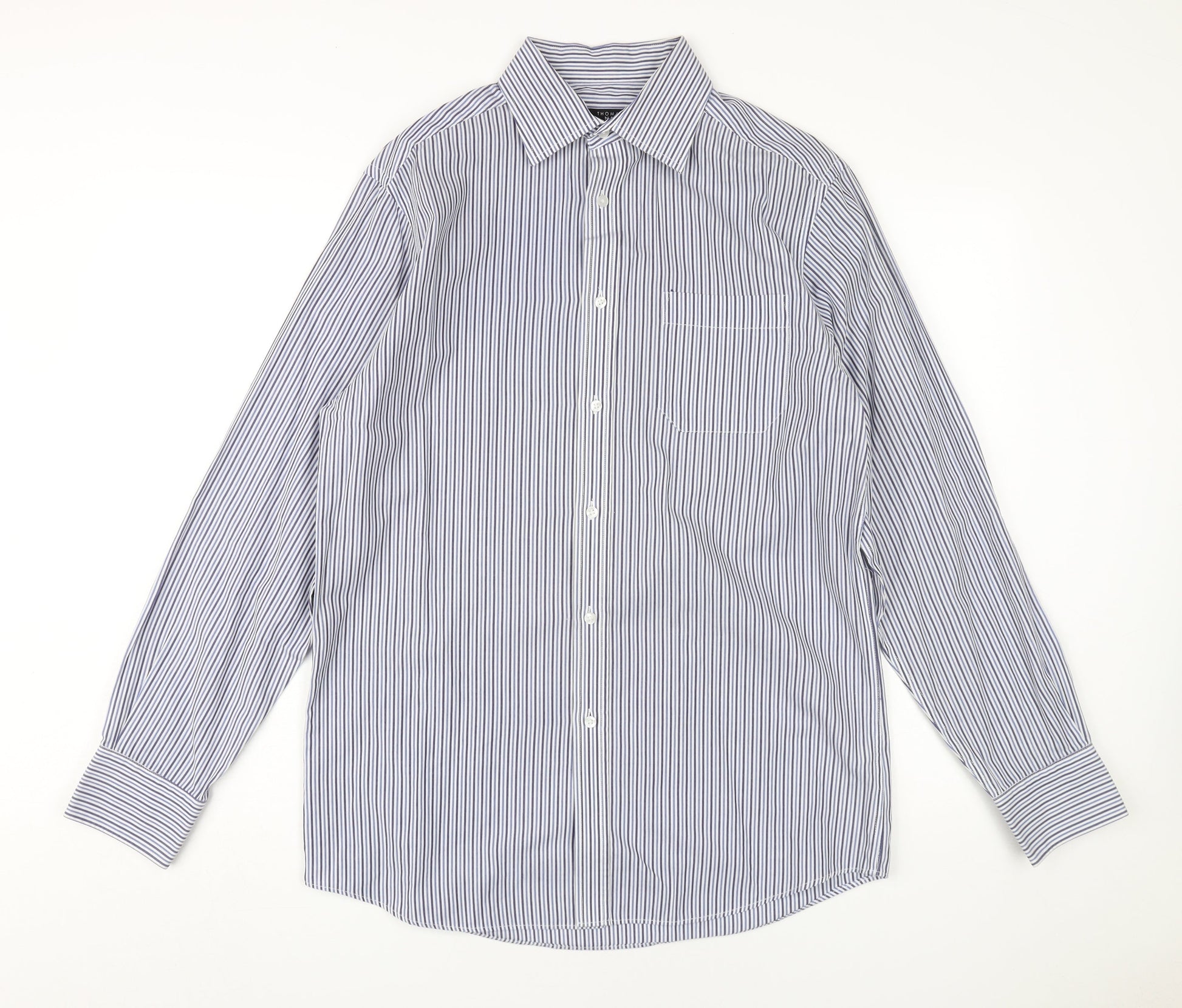 Thomas Nash Men's Blue Striped Classic Fit Dress Shirt