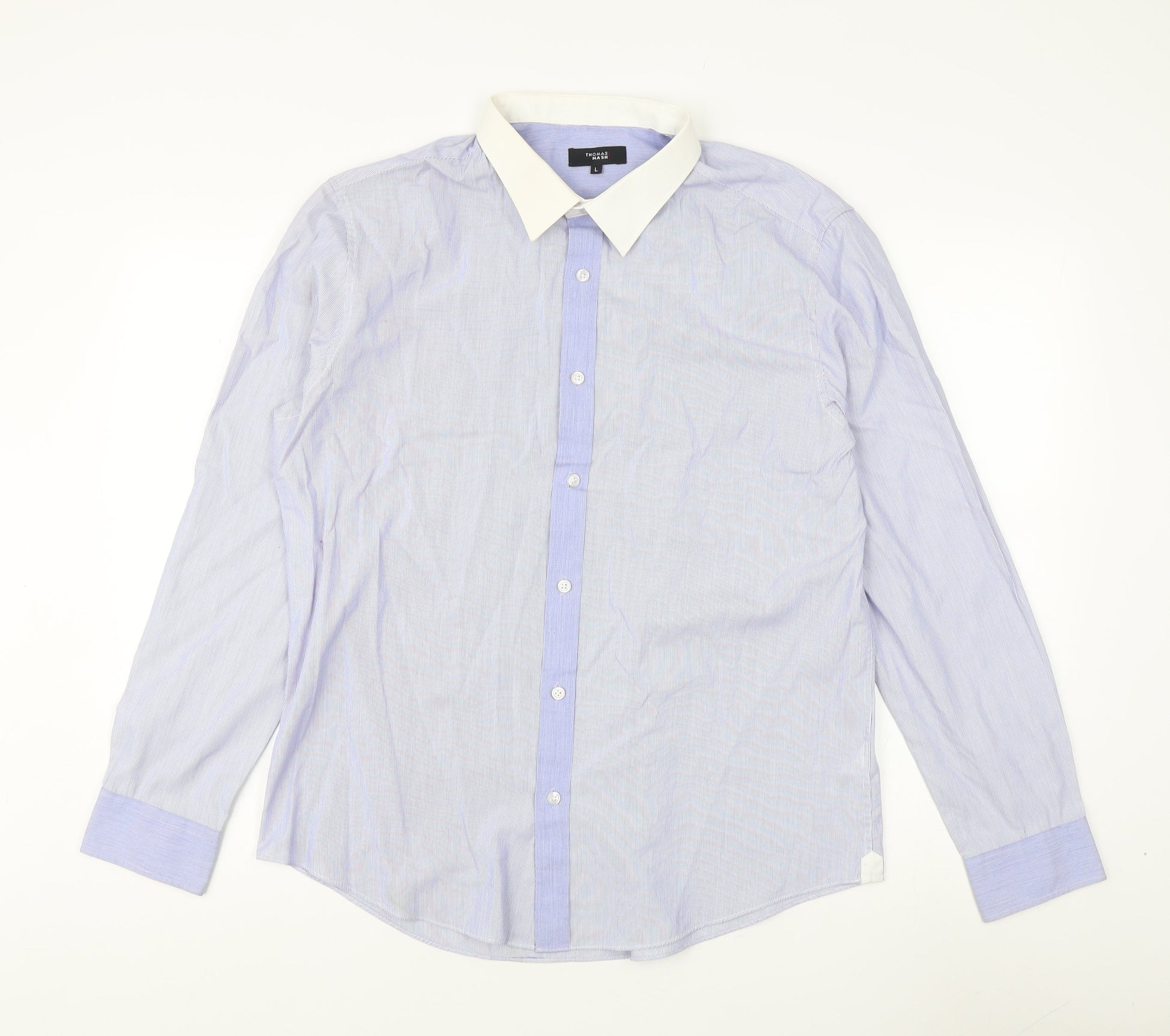 Thomas Nash Men's Blue Striped Dress Shirt L