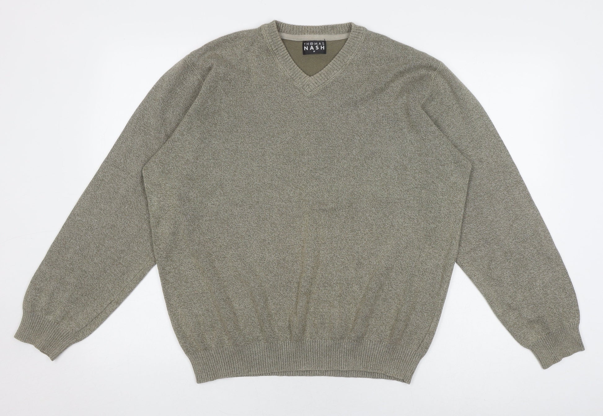 Thomas Nash Men's Green V-Neck Cotton Pullover - M