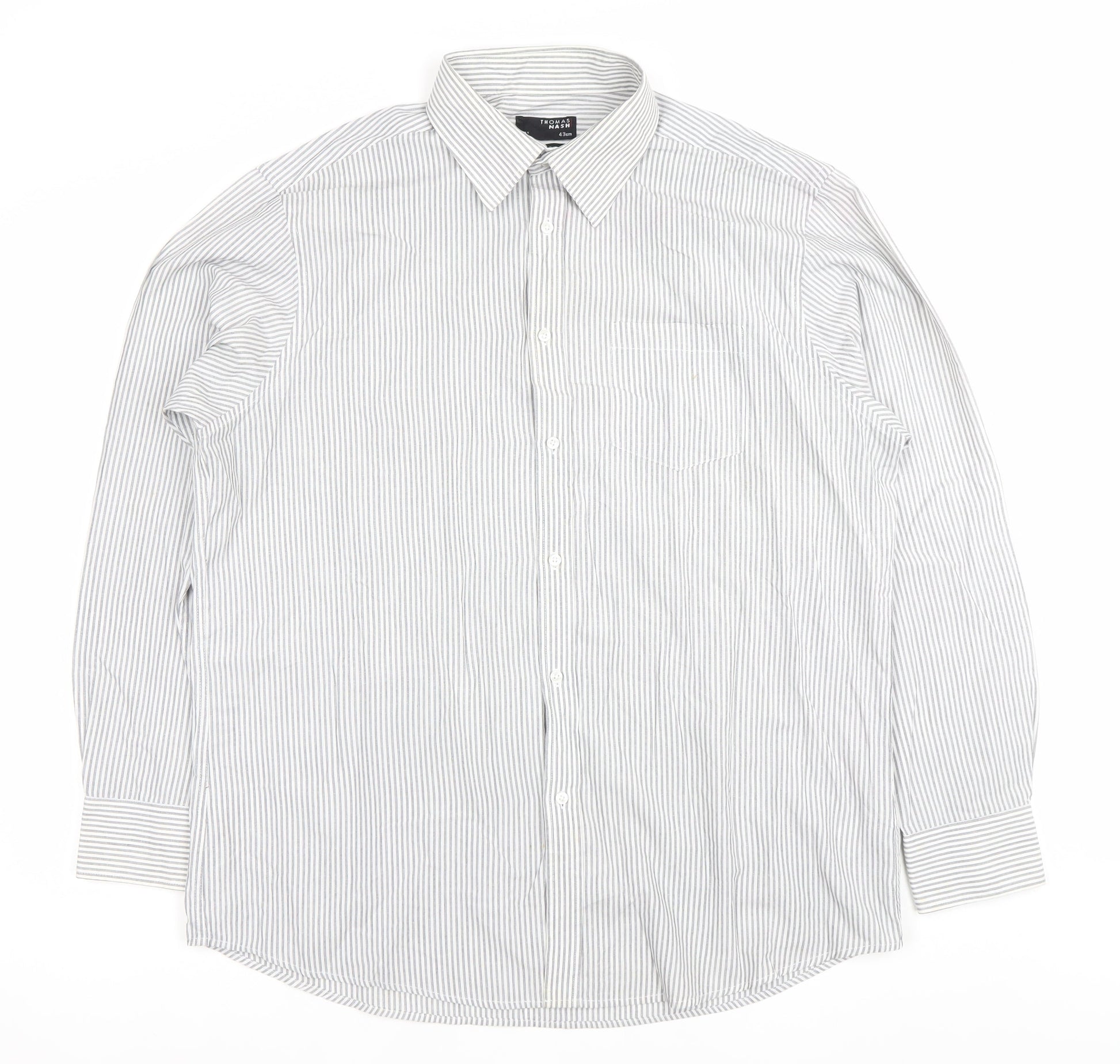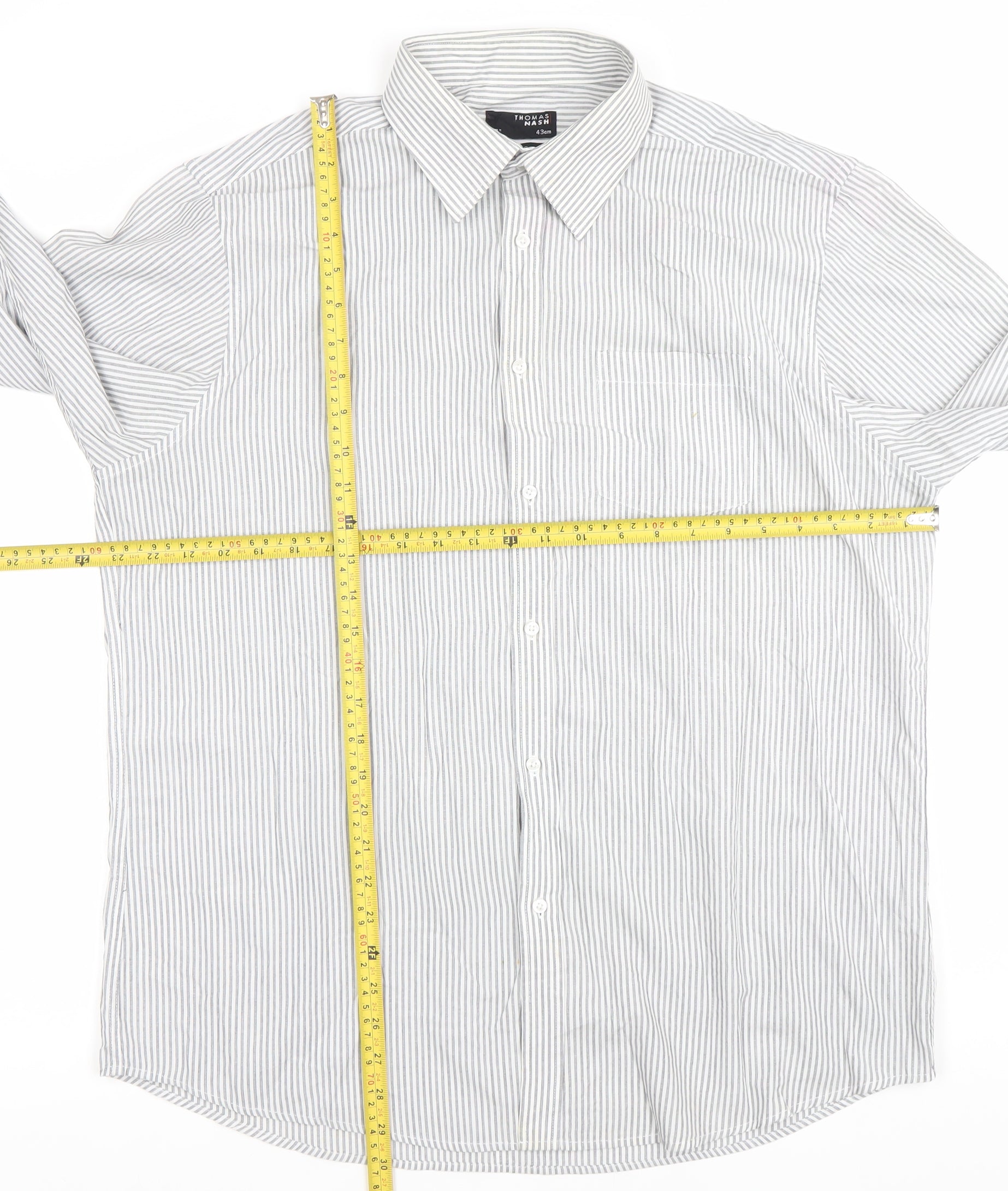 Thomas Nash Men's Grey Striped Long Sleeve Dress Shirt 17in 43cm